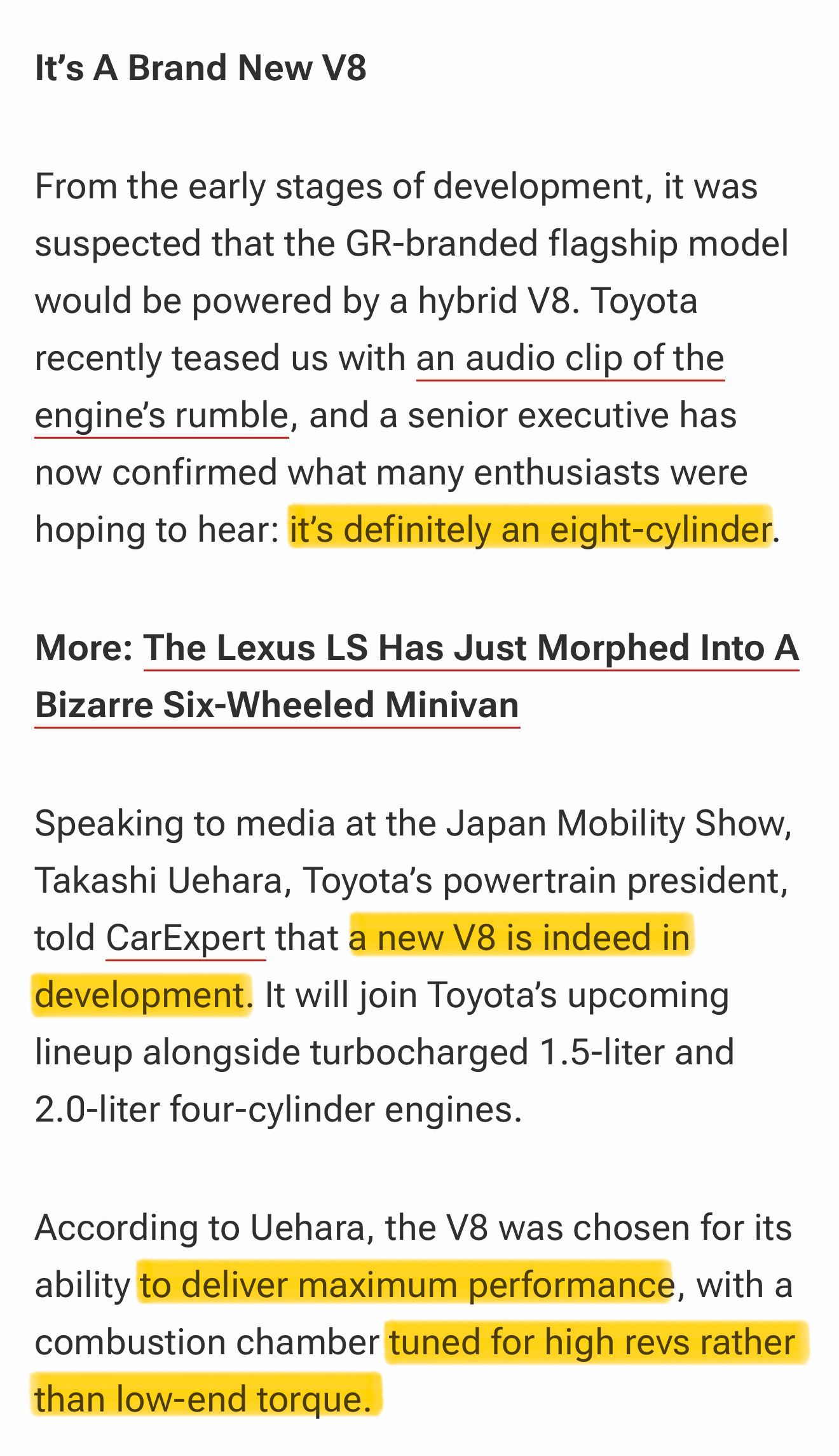 ➡️这款引擎会推出多个风味版本,略疯的那个给丰田的GR,温顺精致的那个给雷克萨斯
