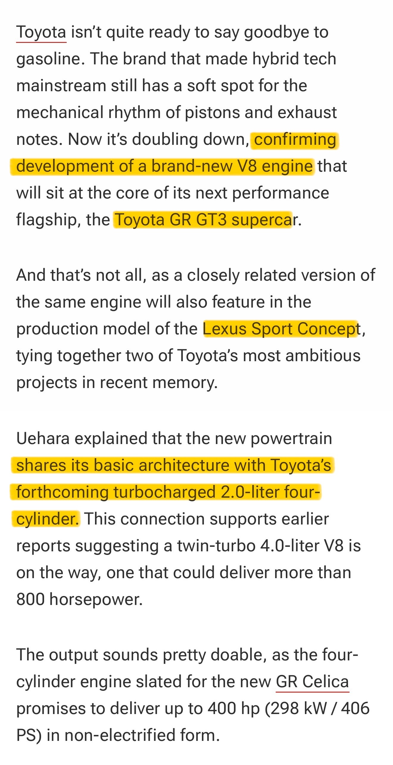 丰田确认在做一款新V8引擎