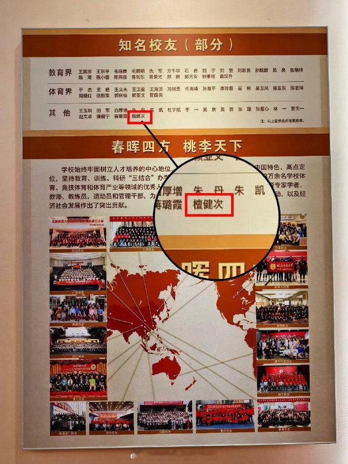 檀健次登北京体育大学校史馆的知名校友墙檀儿优秀!