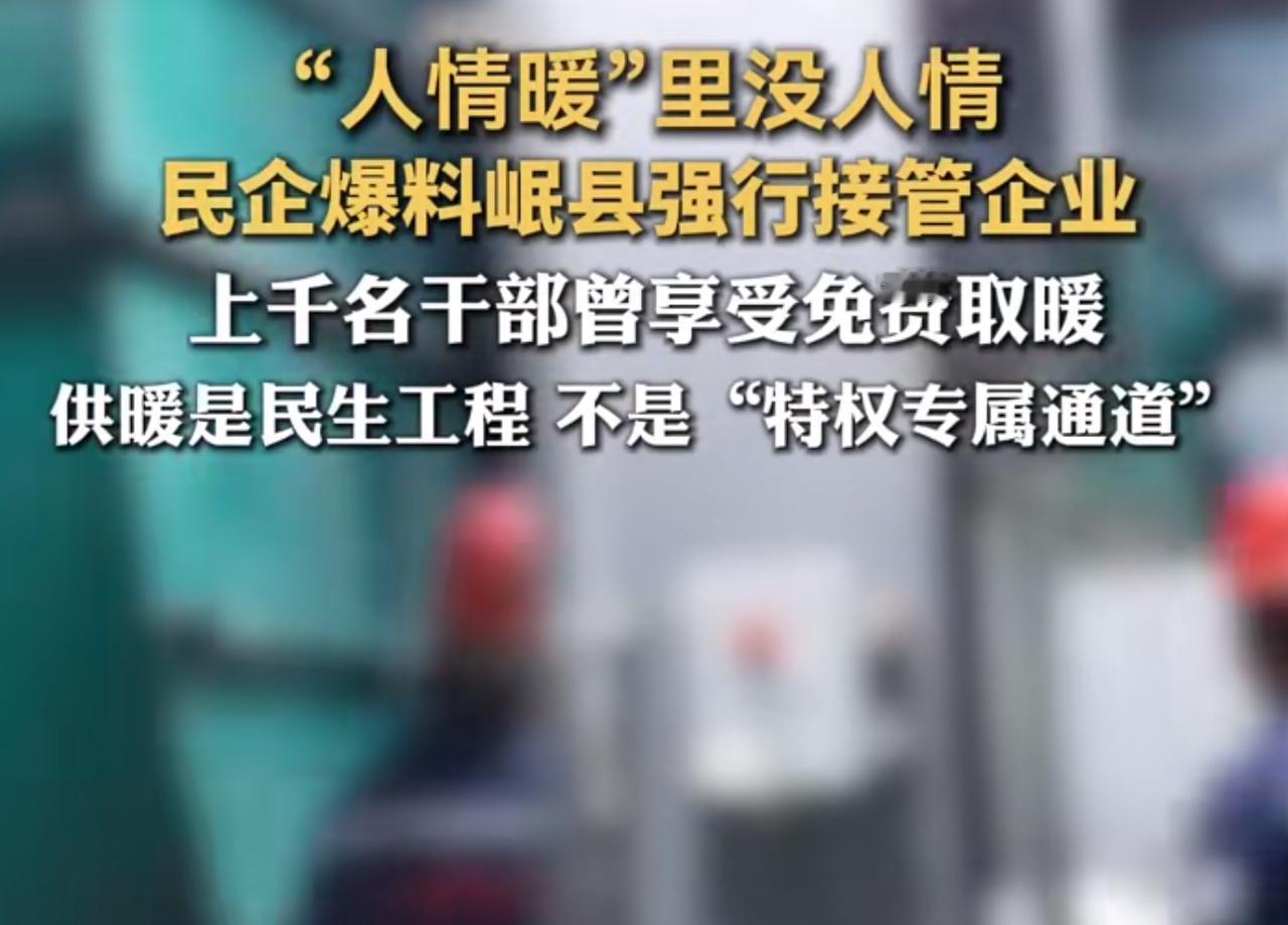 岷县有关部门对该供暖企业的处理是完全符合“以人民为中心”精神要求的,也许相关的接管流程有一些不符合规范,但由于该企业长期服务不及时,服务态度差,供暖经常维修,导致群众怨声载道,影响的社会稳定,应该说有关部门对该企业的接管是完全有必要且及时。至于企业对媒体描述所谓的“人情暖”只是片面之词,当下是法治社会企业有多种手段合理合法的对欠费的客户进行催缴!完全站不住脚