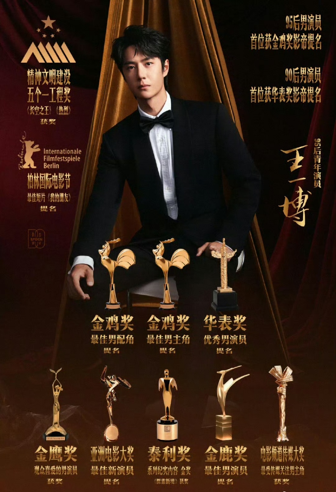翰林实用音乐科A班全优毕业、YG全球唯三(中国王一博 韩国权志龙 泰国Lisa)17课全A出道艺人之一。获含金量高的中外影视剧奖项及提名无数,还是国家认证的Z时代优秀青年代表,联合国亚太青年领袖,华表金鸡等4提影帝之人,全球文明对话部长级会议参会者及全运会会歌演唱者…