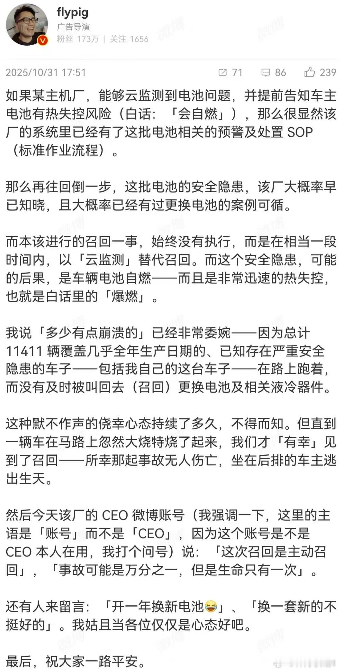 第一,理想这次敢于直面问题,承认MEGA存在冷却液质量隐患,果断全数召回,这份担当,我给点个赞!他们没有把召回包装成什么“OTA升级”,比起那些死不认账、还硬要“丧事喜办”的强太多了!虽然网上也有人吐槽,说理想还是有点“鸡贼”,但不管怎么说,满分100,这波操作至少及格了,守住了企业该有的底线!你可以调侃理想是个“会犯错、有点滑头的男人”,但至少,它不是个不敢认的“太监”!