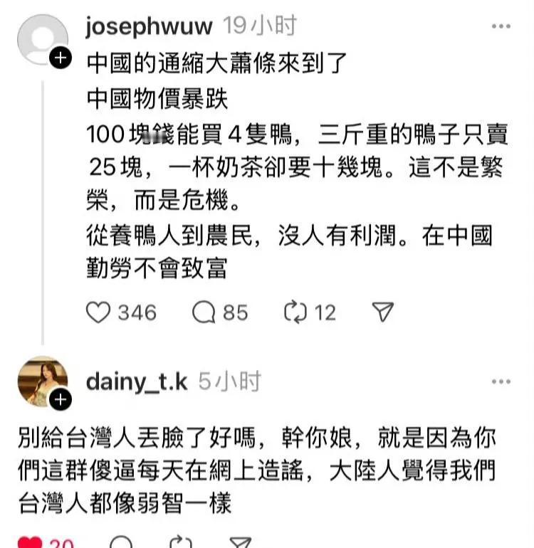 繁体中文贴的互动,有意思! 一个“弱智”,一个“清醒”,清楚地勾勒出了某省的众