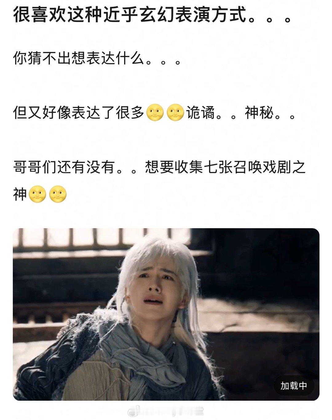 很喜欢这种近乎玄幻的表演方式,猜不出想表达什么,但又好像表达了很多,又诡谲又神秘[老师好]