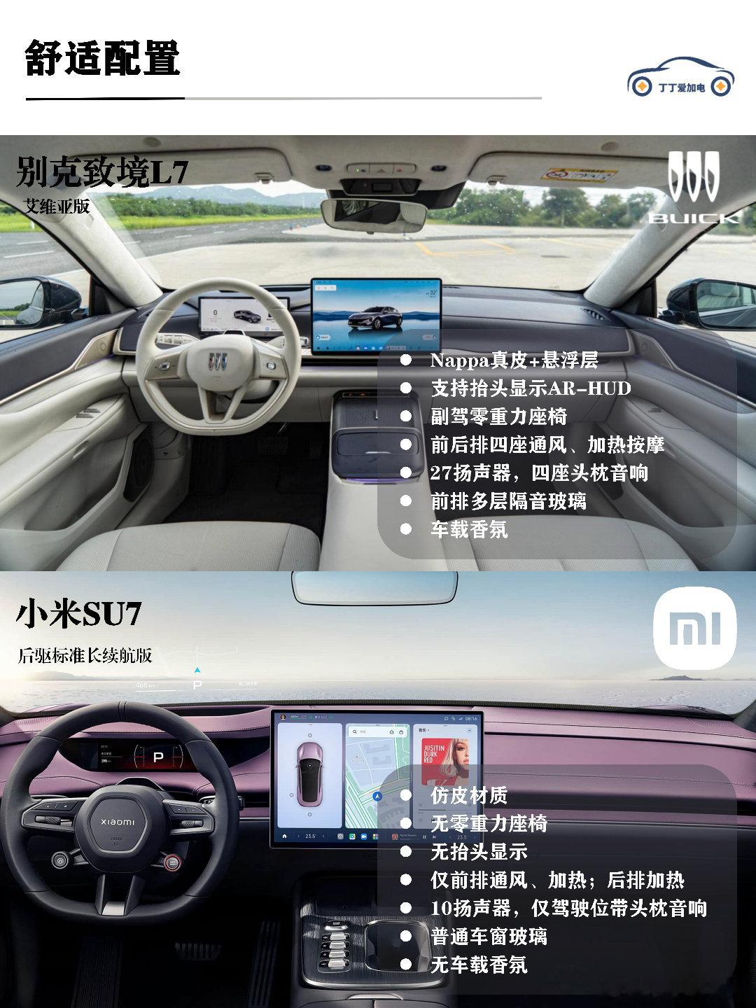 作为经常带家人出游的奶爸,别克至境L7的后排深得我心!NAPPA真皮座椅自带通风加热按摩,连后排都有,副驾还带零重力座椅!而SU7的座椅偏运动,包裹性很强,但后排配置相对简单。如果你常带家人出行,别克至境L7的舒适性会更实用;如果多数一个人开,SU7座椅也很舒服。