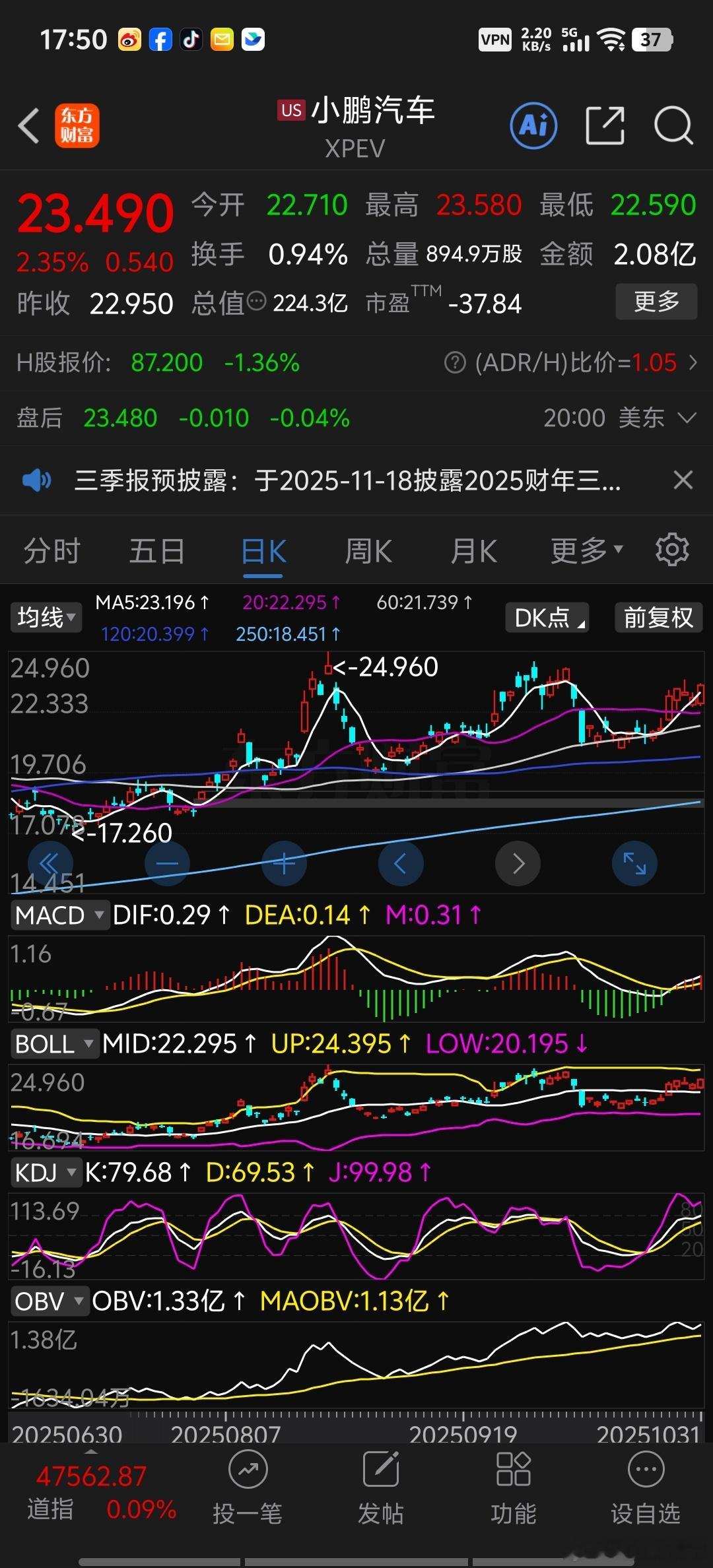 对比了一下小鹏港股和美股的走势,更加坚定了一个判断:小鹏的运营真的走对了。港股偏重情绪和短期变量,而美股市场则更认可小鹏的国际化视野和长期价值——这点在走势上已经有明显体现。