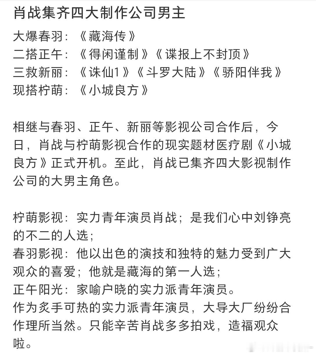 肖战部部爆剧肖战出品 部部精品!不仅招商拉满 剧本也很扎实 且肖战独有的为角色赋魅的能力和二创能力会让剧情 人物更加出彩![写作业][写作业]