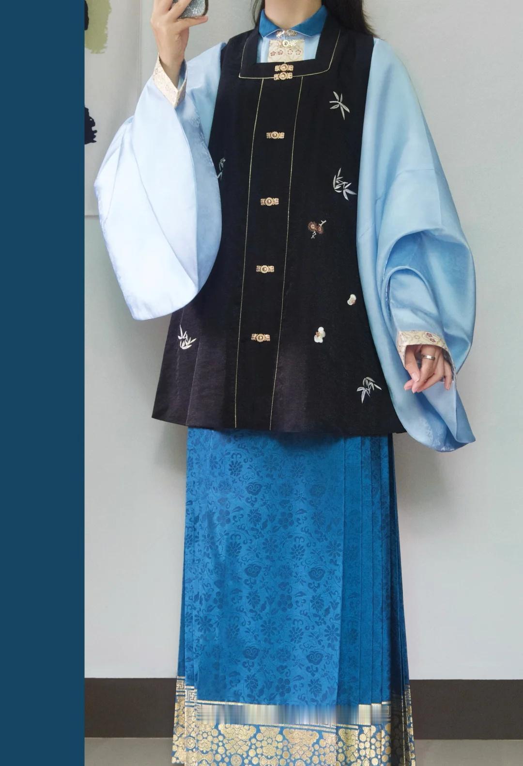 汉服日常|雀蓝陈娘子与晴空蓝~我真的好蓝 深深浅浅的蓝蓝蓝 蓝色脑袋永远不会放弃买蓝色 拖延症又能怎 穿了拍了就是没想着要导出来 期待快点再一次降温可以继续明制ootd 同一件比甲连着搭了三天还有谁 我确认岁寒比甲跟循循一样百搭 用汉服打开秋日美学 把汉服穿进生活里 不一样的蓝 穿搭 蓝色系 琵琶袖 青泠谷汉服 声徽汉服 杉水集 汉服