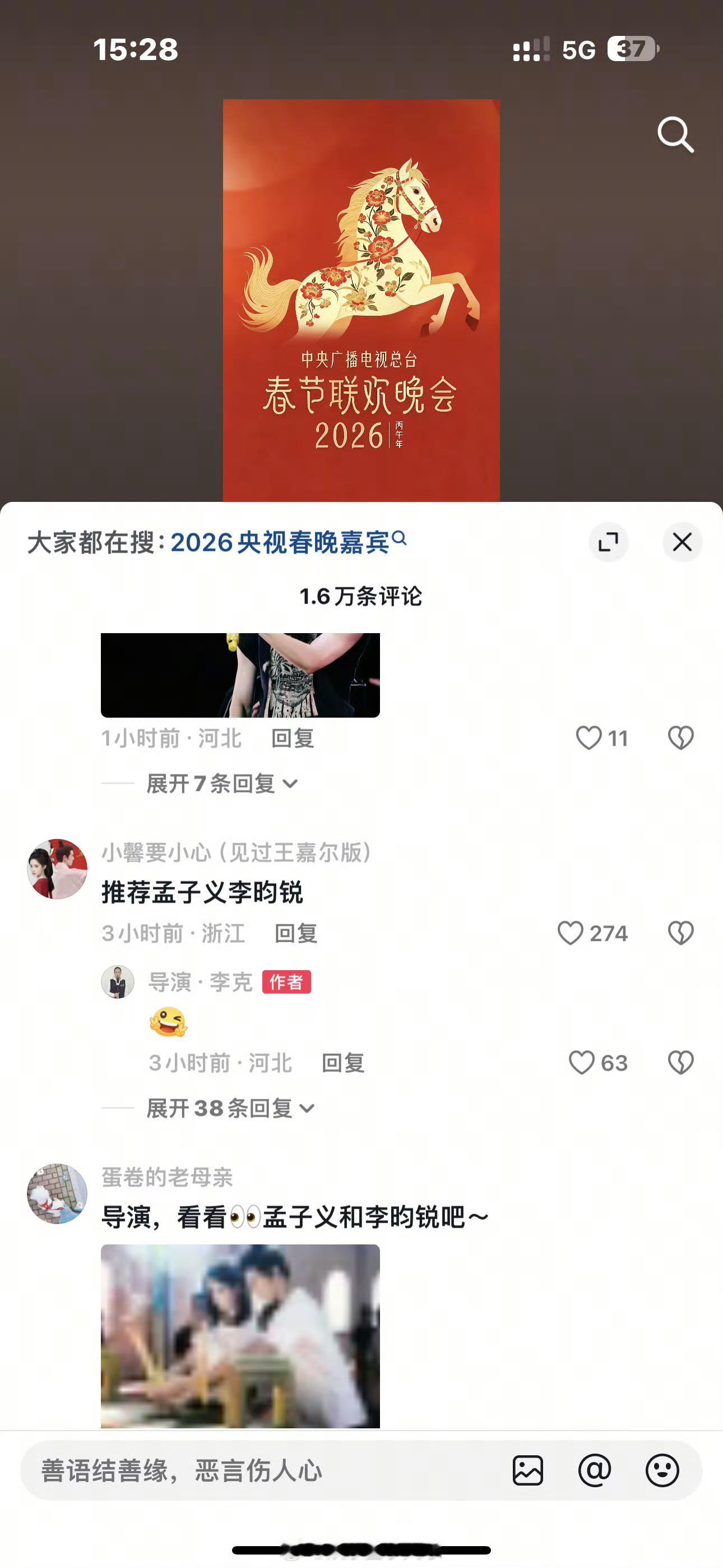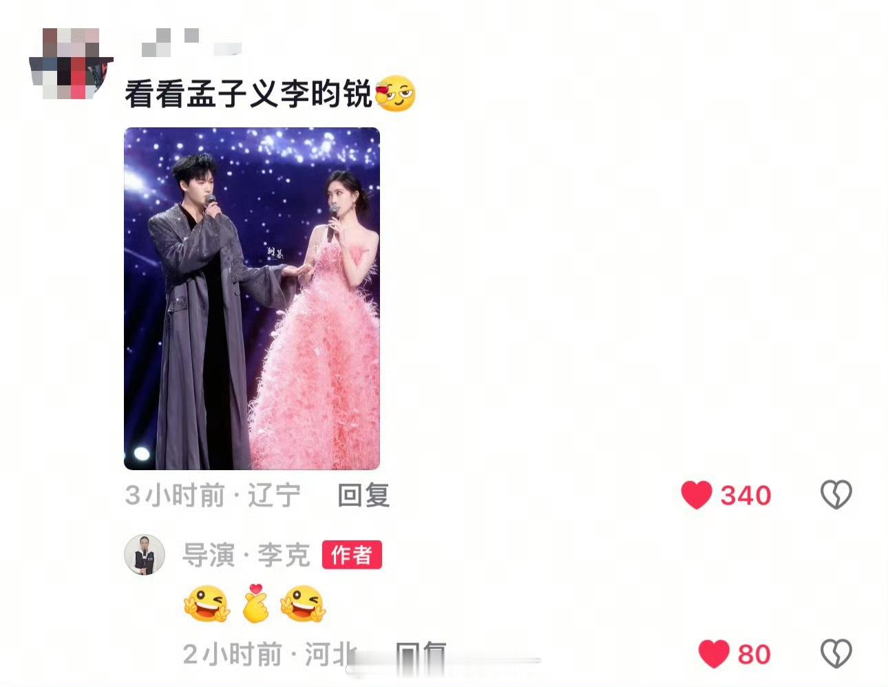 2026春晚导演连续回复了两条昀牵孟绕的评论,不会真的能在2026春晚看到李昀锐孟子义吧!!!!那真的是过!大!年!啊!