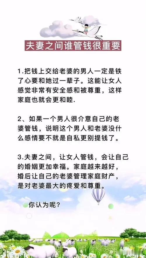 夫妻间金钱支配该不该完全透明?这个问题,估计能引发不少夫妻的激烈讨论。有人觉得透明是信任的基础,有人却觉得保留点隐私才更自在。那么,到底哪种观点更合理呢? 其实,夫妻间金钱支配是否要完全透明,并没有一个绝对的答案。完全透明,意味着双方对彼此的财务状况了如指掌,这确实能增强信任,减少因金钱问题产生的矛盾。比如,一方突然有大额支出,另一方能及时了解并给予支持或建议。但完全透明也可能带来一些问题,比如,有些人可能觉得自己的财务隐私被侵犯,或者因为对方过度关注自己的消费而感到压力。其实,关键在于夫妻双方能否找到一个平衡点,既能让对方了解自己的财务状况,又能保留一定的个人空间。比如,可以定期分享财务状况,但不必每一笔消费都详细汇报。这样,既能增进信任,又能保持一定的独立性。 夫妻间金钱支配的透明度,确实是个值得探讨的话题。每个人对金钱和隐私的看法都不同,找到适合自己的方式才是最重要的。你觉得夫妻间金钱应该完全透明吗?快来评论区分享你的看法吧!