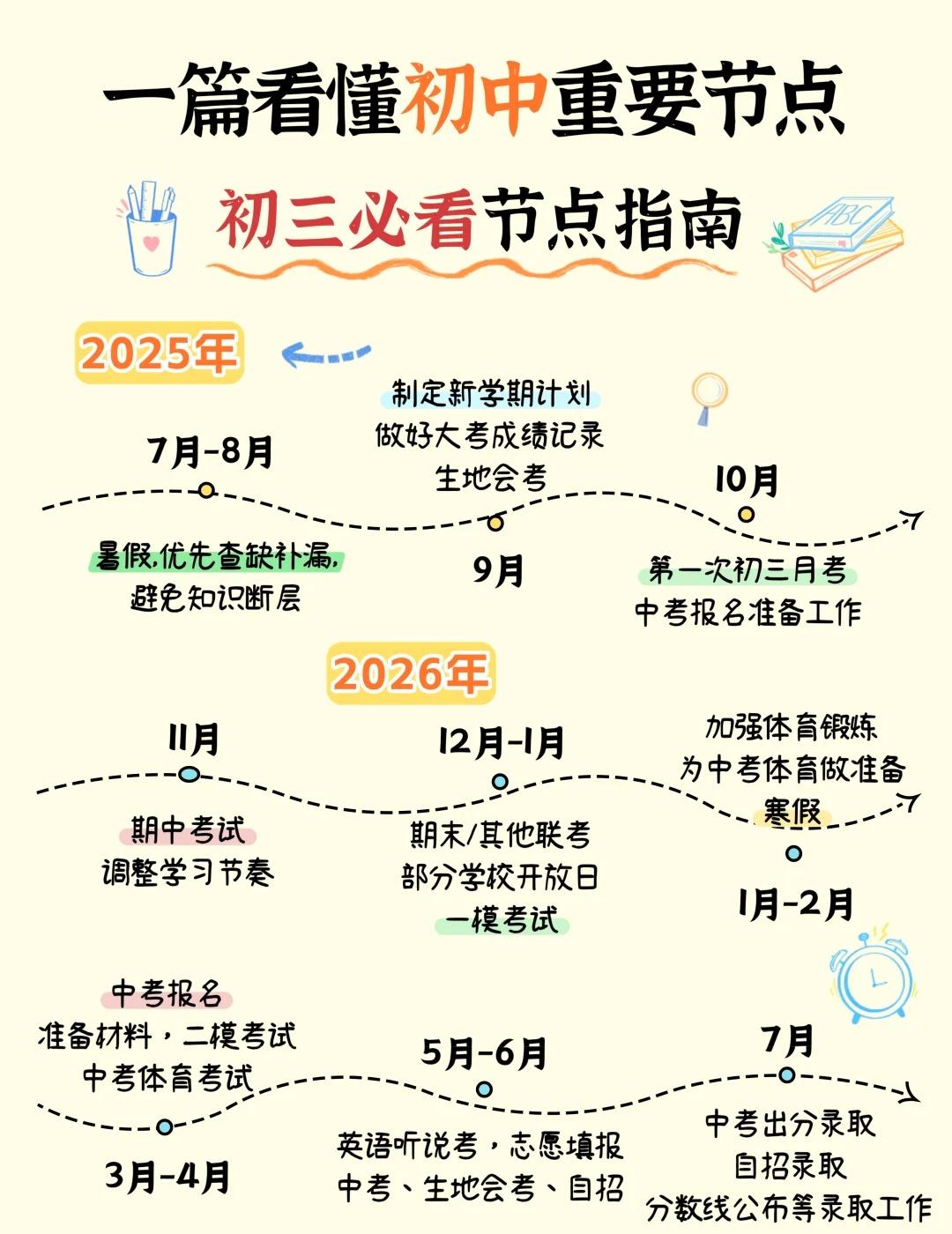 一篇看懂初中重要节点 各位初中生的家长,快来看看孩子初中三年有哪些重要节点大事!提前规划布局,助力孩子成长! 太原初中生 太原家长 太原中考 学习规划 教育规划 学业规划