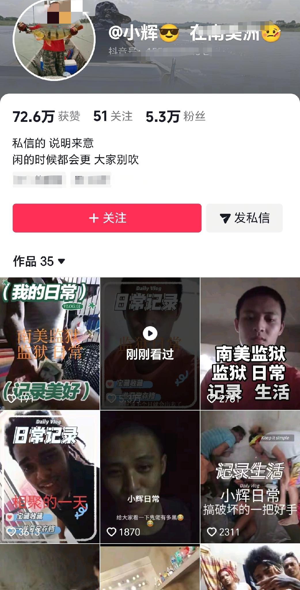 真的有人拍监狱vlog,妥妥纯狱风,长大见识了!这位博主叫某辉在南美洲,ip苏里南,他分享了自己在南美监狱的监狱日常,咱还不知道南美监狱里居然还能玩手机,我上班都不敢这么光明正大玩手机呢! 上午刷到特朗普白宫开会现场,晚上刷到南美监狱,互联网这条赛道真是超出了我的想象,太新了这赛道! 至于为什么进去了,他本人分享过原因哈,不是因为什么奇葩的事情进去的,他是因为在国外走私了一些烟进去的,估计也不会待太久吧。 这有人就开始问了“如果真的可以用手机,那大碗宽面为啥不发视频呢”?