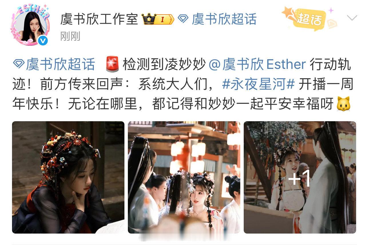 虞书欣工作室发文庆祝《永夜星河》开播一周年,凌妙妙新剧照[偷乐]