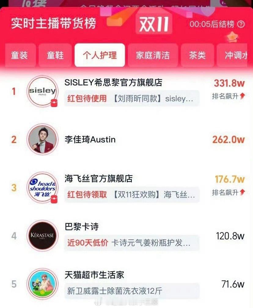 刘雨昕希思黎活动升至实时带货榜第一了[春游家族]