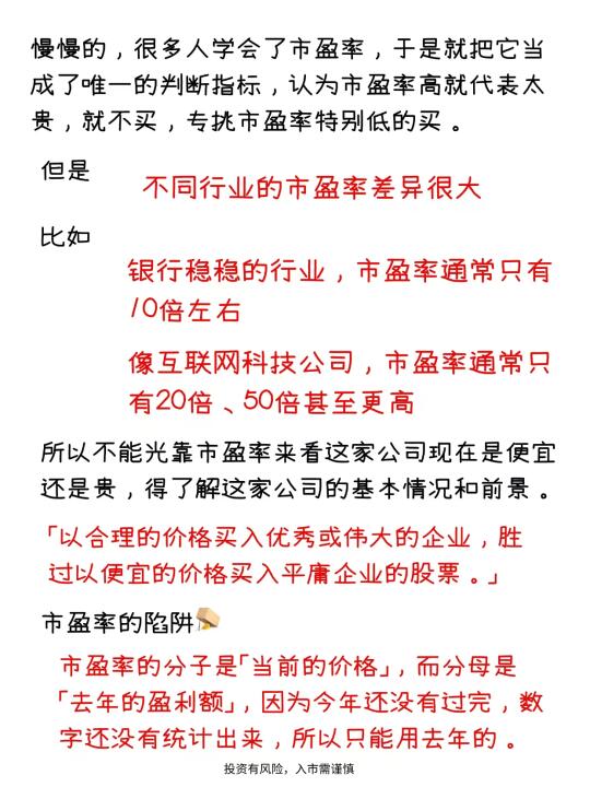财商启蒙 股票 投资 股票小白 股票交易 投资交易 投资指标 市盈率