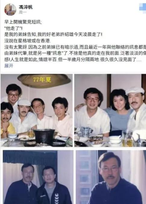 76岁的许绍雄离开后,81岁的冯淬帆也是紧随其后。 在10月28日这天,许绍雄去世后,冯淬帆也是在社交平台上进行了回应,回应中那句让人心碎的那句话。“贤弟那边等,愚兄随后来”竟一语成谶。 不敢想象,港圈的老戏骨是一个一个的老去,一个又一个的离开。回想那些年在电视机前等着他们的现身,如今更是回忆都是成为经典的存在。 81岁的冯淬帆无儿无女,独自一人在台湾独居,最终是悄然离世,自己一个人走完了人生的最后一程。 曾在电影《五福星》中,因为一句香蕉你个芭乐,走红港圈,可是在情感方面上,他一直都是性格孤僻,结束了两段感情。 晚年的他更是饱受疾病的折磨,如今离去也算是一种解脱,两人也是在另一个世界做个陪伴。