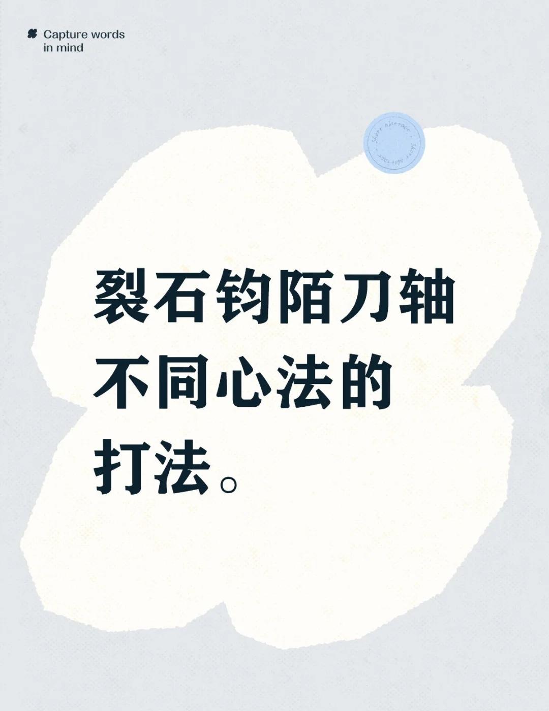 裂石钧陌刀轴不同心法的打法 之前算得有点问题,跟实际对不上,现在知道问题在哪了,可以有定论了。 孤忠 、易水 、征人、 明晦,时雨套 陌刀特殊 滑铲 蛤蟆 飞鸿 刺 4刀 骑龙 秒q 精元用不完就在滑铲前吹箫,具体打法看我之前发的视频。 孤忠 、易水 + 带了易经或威猛其中一个,或者两个都带了,套装随意。 轴上:滑铲 飞鸿 刺 3刀 陌刀特殊 2刀 秒q 吹箫 轴下:滑铲 蛤蟆 飞鸿 刺 3刀 陌刀特殊 2刀 秒q 上下交替打,第一次打之前没buff,要开一次陌刀特殊,后面都是3刀之后开。 两种打法区别 当带了蓄力增强的心法时,骑龙不如慢速蓄力,所以要打5刀轴。 又因为木桩里明晦垃圾,所以木桩都是5刀轴。 燕云十六声