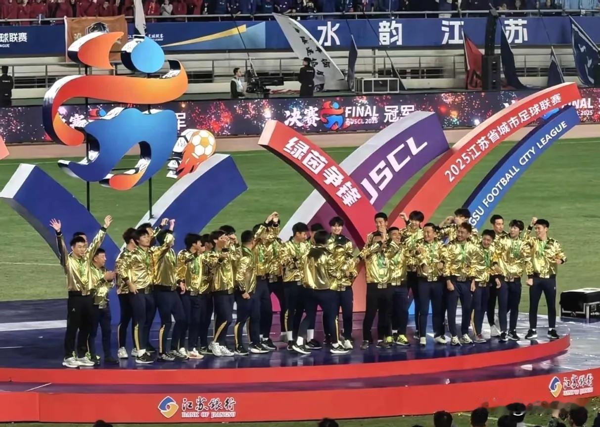 昨夜南京奥体,山呼海啸。 六万人注视下,首届苏超奖杯, 被一袭金色战袍的泰州队高高捧起,这匹总排名仅第六的绝对黑马, 加时鏖战,点球决胜, 硬生生将“不可能”变成了高光时刻! 金袍傍身,金杯闪耀, 映照南通队长李贤成难掩的泪水… 那一脚射失的点球, 成了几个月来最刻骨铭心的遗憾, “叫南哥”的豪迈突然间没了底气。 一边是黑马登顶狂喜, 一边是功亏一篑的心碎, 足球的童话,苏超的佳话! “南通不哭,明年再战!” 球迷的呐喊穿透夜空, 苏超赛场传来最残酷最动人的回声! 然而,泰州凭什么赢? 从半决赛点杀南京, 到决赛再度拖入点球, 他们骨子里有股“不服输”, 拼到最后的韧劲! 泰州为什么能赢? 前国脚化身“苏超吴用”, 女帅周高萍的排兵布阵, “智多星”般的谋略, 让被摸透套路的南通难施拳脚。 泰州能赢,也许还有好运的成分, 点球大战,运气大概也喜欢更坚韧的他们。 这就是“散装江苏”十三太保的江湖, 没有永远的霸主,只有永不熄灭的斗志! 冠军的奖杯,凝结汗水和智慧,也镀着失意者的不甘与来年的渴望。 恭喜泰州!致敬南通! 同时也致敬每一份拼搏! 明年的苏超,将因这份韧劲与遗憾更精彩,更值得期待! 江苏城市足球联赛
