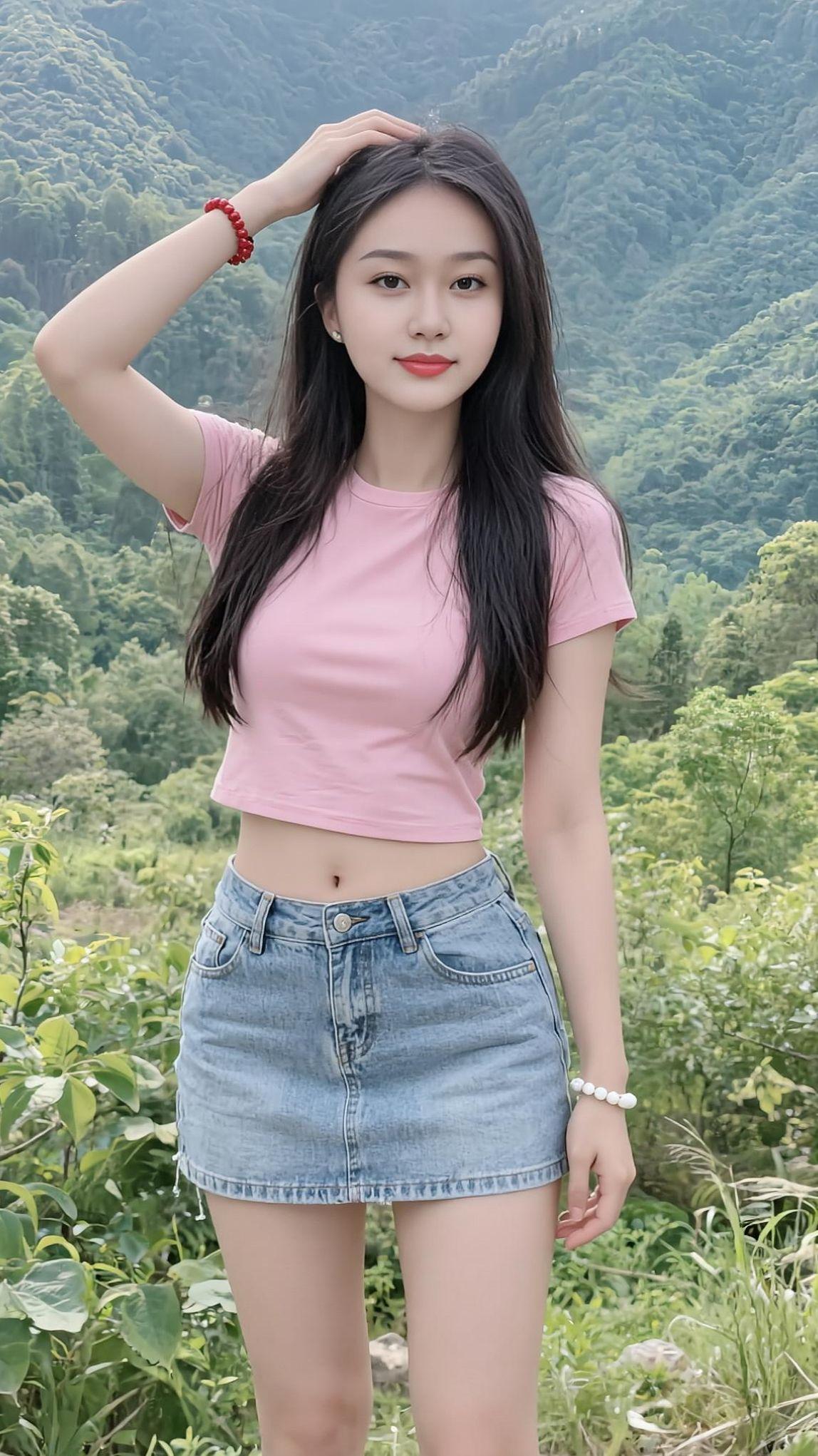 清新少女风穿搭,绿色针织衫搭配白色破洞牛仔裙,粉色小包包点缀,元气满满!🌸💕