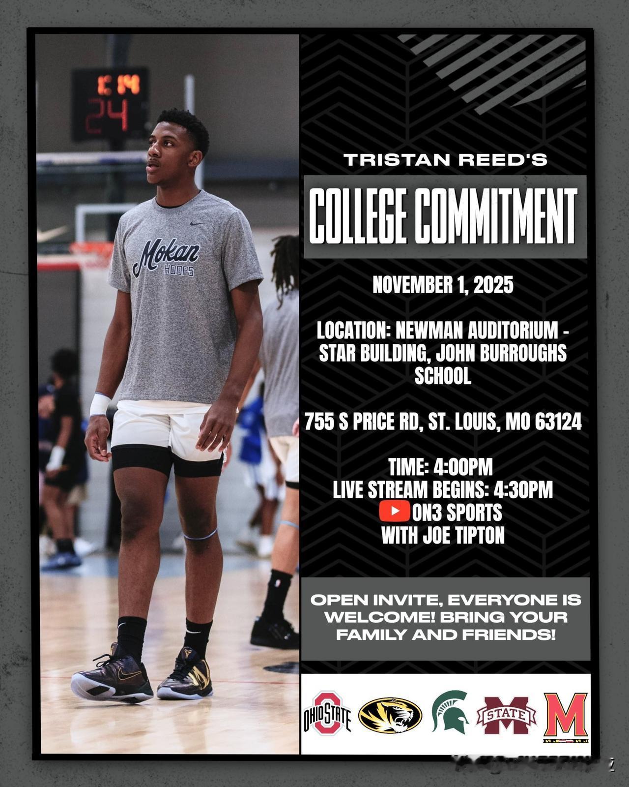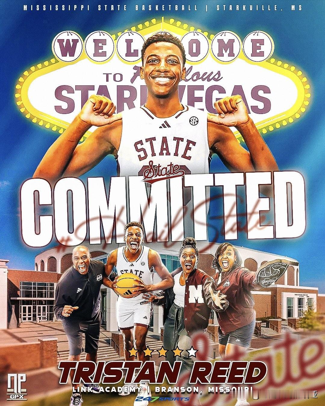 四星中锋Tristan Reed宣布承诺NCAA男篮 密西西比州立,身高6-9=206,来自圣路易斯,高四赛季转学至密苏里州Link Academy,选择这里是因为文化和教练的魅力,主帅Chris Jans是一个了不起的人,他在球场内外都真正关心他的球员并且相信他们,球队这届收到的第四位加盟者。