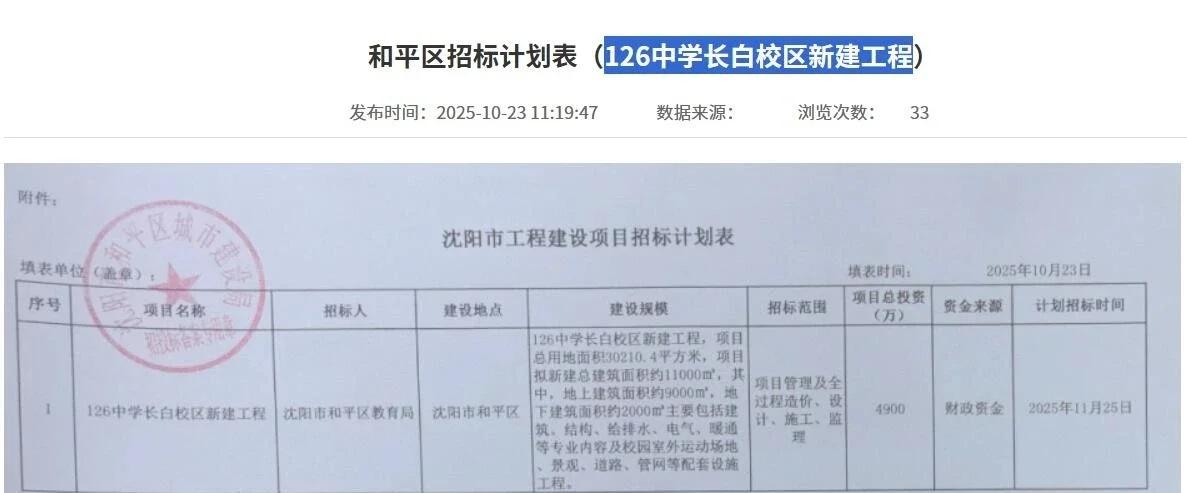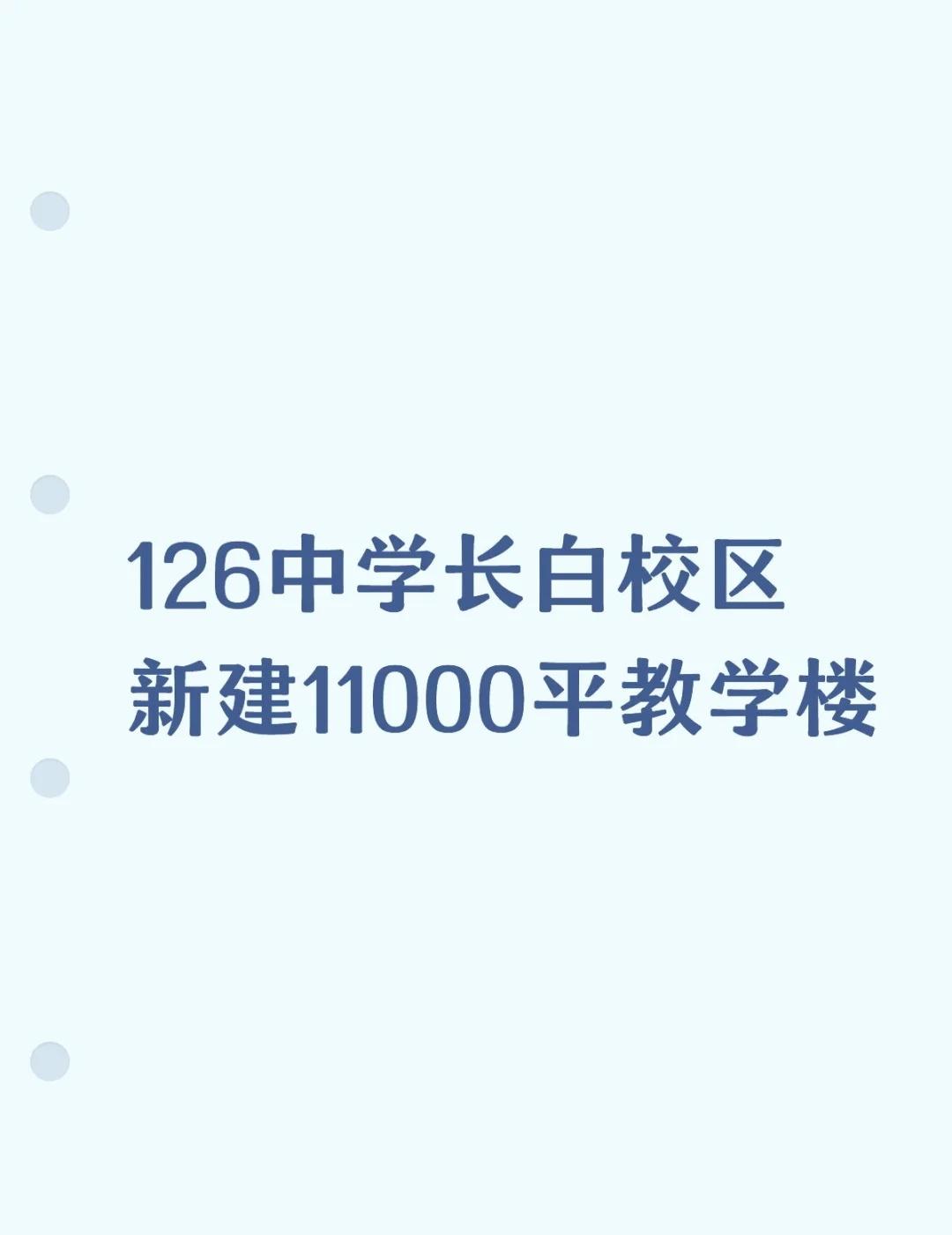 126中学长白校区新建11000平教学楼 根据公开的招标计划,126中学长白校区,新建一座11000平教学楼,预计增加教室60-85间。可以想象,长白地区的初中生源激增,马上到来。沈阳 沈阳中考 沈阳学区房 沈阳和平区 126中学