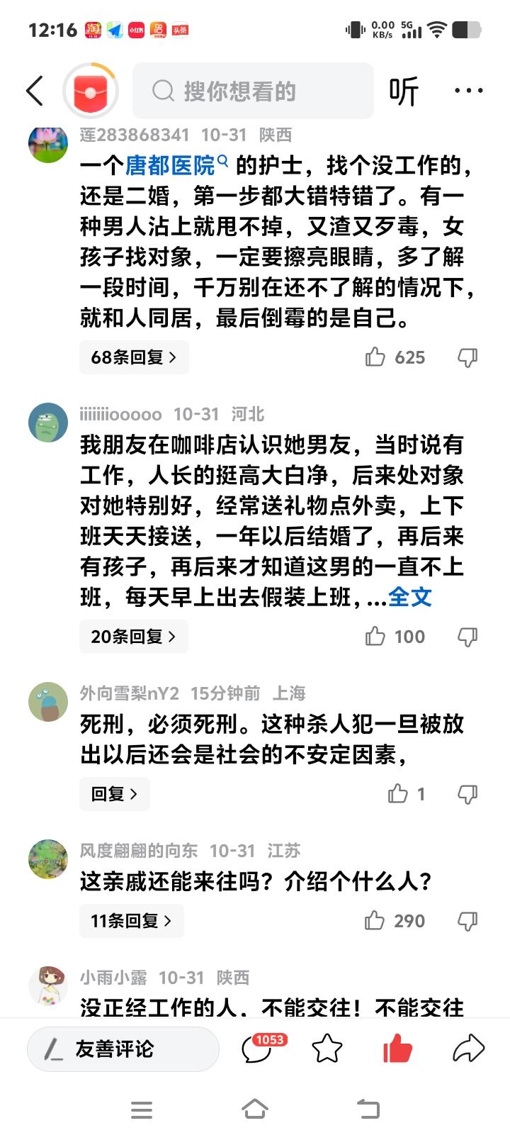 西安唐都医院护士悲剧引爆全网:亲戚介绍二婚无业男竟成夺命恶魔!婚前隐藏暴力倾向同居一年终酿血案 (来源:综合自抖音、今日头条、微博等平台网友热议) 当白大褂染上爱情的阴影,一场始于亲戚介绍的“良缘”竟以血案收场。西安唐都医院一名护士董某某,通过亲戚结识了无业、二婚的师某某,本以为找到了避风港,却不知踏入了精心编织的陷阱。婚前同居的一年里,师某某多次暴力相向,甚至惊动警方,却仍以甜言蜜语将受害者拉回深渊。如今,一条生命的消逝撕开了“闪婚”“同居”背后的残酷真相——有些人,从相遇开始就是错误。 这段始于“善意”的姻缘,如今看来每一步都踩在裂痕上。亲戚信誓旦旦的担保,让董某某放下了对二婚、无业身份的警惕。殊不知,师某某的温柔体贴仅是短暂伪装,同居后逐渐暴露的控制欲和暴力倾向,早已为悲剧埋下伏笔。网友“小雨小露”痛心疾首:“没正经工作的人,不能交往!”这句话背后,是多少类似案例的血泪教训? 更令人窒息的是,暴力并非毫无征兆。据网友“奔雷手彪泰来”爆料,二人相处期间师某某多次殴打董某某,甚至报警处理后仍纠缠不休。这种“甩不掉的渣男”模式,恰恰印证了心理学中的“暴力循环理论”——施暴者通过道歉、讨好等手段让受害者心软,继而重复伤害。董某某的忍让,何尝不是许多女性在情感中的缩影? 亲戚介绍本应是安全感的来源,此案中却成了悲剧的催化剂。网友“风度翩翩的向东”质问:“这亲戚还能来往吗?”现实中,熟人介绍常让人放松背景调查,殊不知“知根知底”也可能变成“刻意隐瞒”。师某某的过往婚姻、暴力史若被提前揭露,或许悲剧就能避免。 从法律角度看,此案再度掀起“死刑与否”的争论。网友“外向雪梨nY”呐喊“必须死刑”,而“博学书签gs”则理性分析:死刑虽解恨,但无期徒刑加禁止减刑更能让罪犯长期赎罪。无论结局如何,此案暴露出对家暴预警机制的缺失——若第一次报警后能有更强制性的干预,结局是否会不同? 董某某的遭遇,折射出当代婚恋中的深层焦虑。快节奏社会下,“闪婚”“同居”成为常态,但缺乏时间沉淀的关系,往往难以识别风险。网友“iiiooooo”分享的朋友案例中,男性伪装上班一年才暴露无业真相,可见有些人擅长用表演掩盖本质。 此案最刺痛人心的,是受害者“本可避免”的遗憾。若她多一分对无业者的警惕,若社会对家暴干预再及时一些,若亲戚介绍时少一分敷衍……悲剧提醒每个人:婚姻不是赌博,背景调查、时间考验缺一不可。 如今,董某某的生命已无法挽回,但她的故事能否成为警示?当我们讨论“擦亮眼睛”时,真正需要擦亮的是整个社会对家暴的零容忍态度、对婚恋中介的责任追究,以及女性自我保护意识的觉醒。