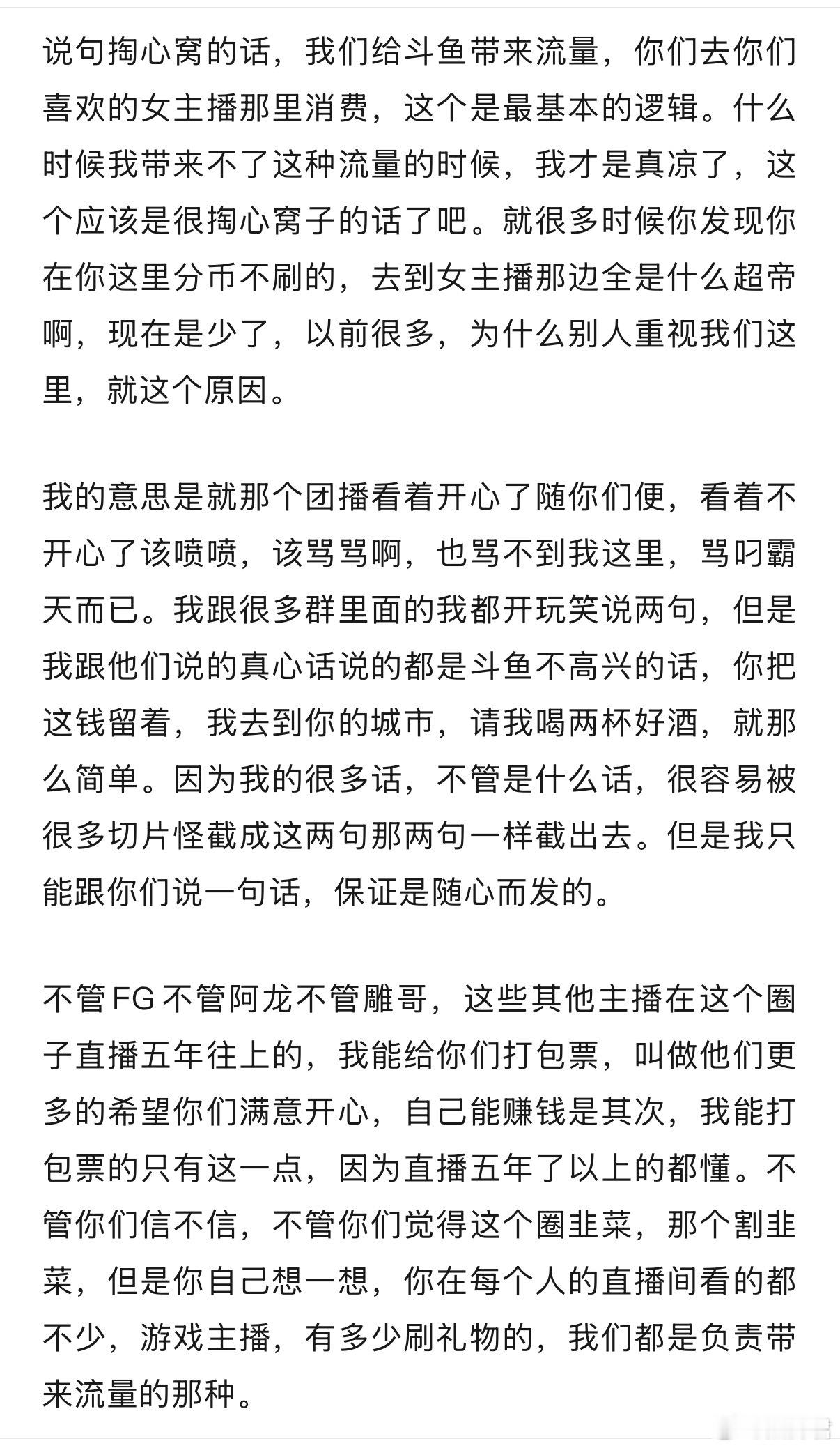 老菜深夜喝酒喝大了来了一波真情流露,哽咽了,中间一度直播间都被超管拿下了!主要就是说不在乎大家刷不刷礼物,因为斗鱼在乎的是流量,大家在直播间开心是最重要的dota2