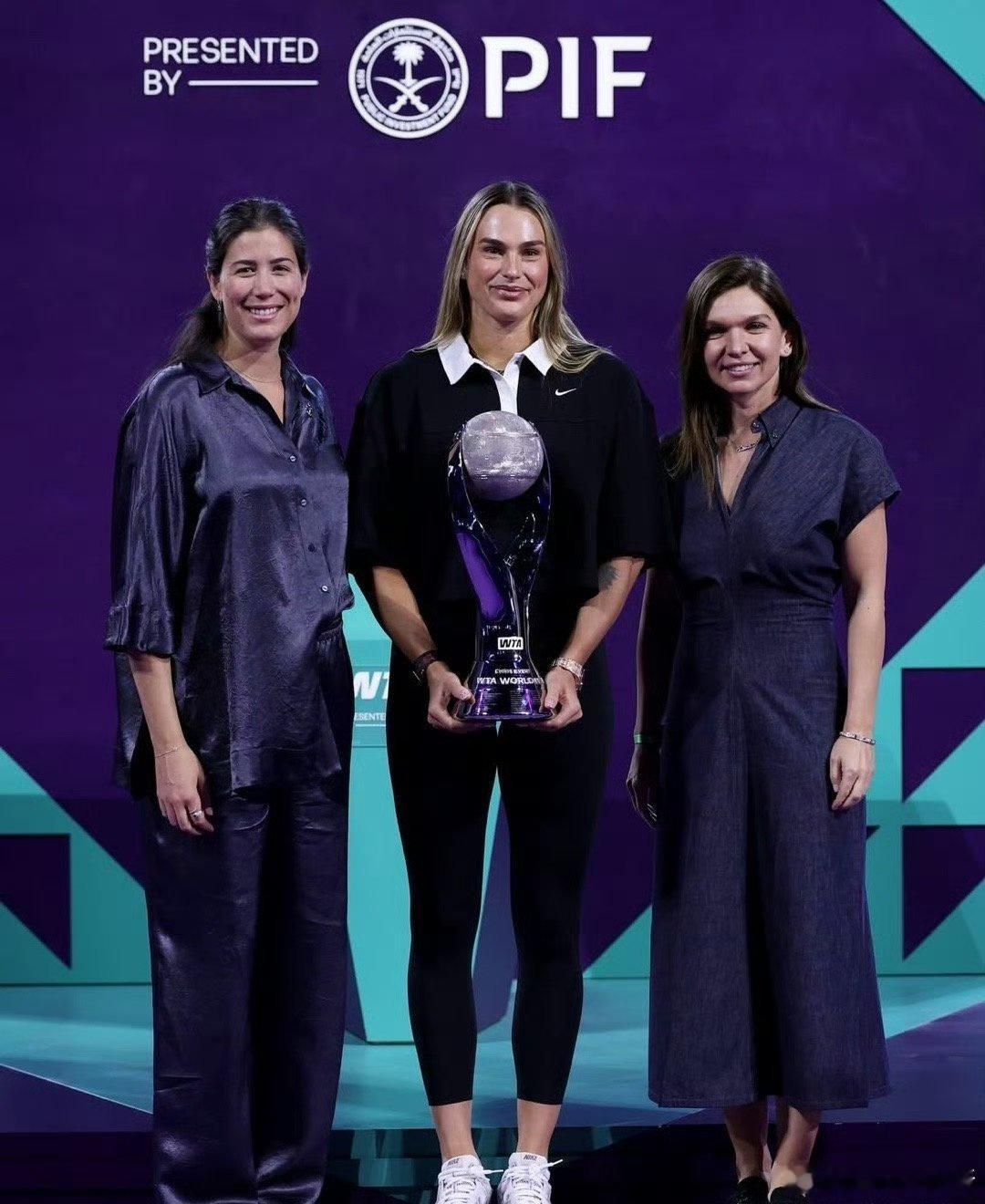 萨巴伦卡领取年终世界第一的奖杯