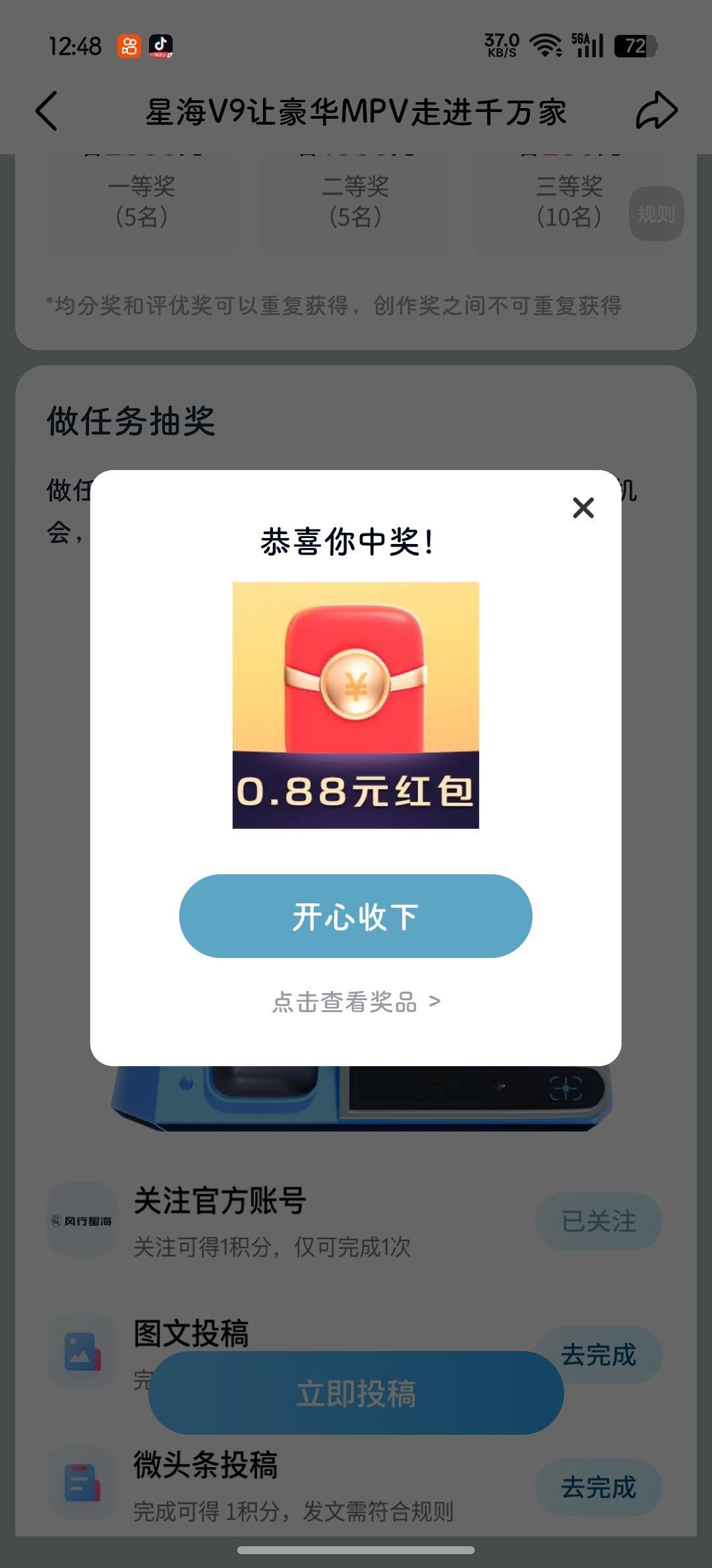 今天汽车征文抽奖,羿欧两个0.88 星海一个0.88 都是咪咪小的小红包🧧~