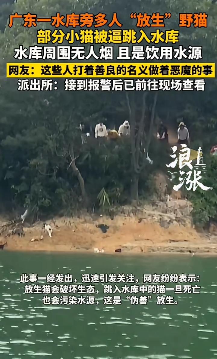 广东一水库惊现多只野猫,它们到处乱窜,有些甚至直接跳入水中其中原所因由让人不寒而栗。 徐徐望去岸边站着7名装束各异的人士,虽然无不妥之处可还是让人有点猜疑,从他们朝拜和驱离的架势来看似乎是一种习俗,就像在河里放生鲫鱼或者乌龟,可在河边如此猖獗的驱离野猫或许是一时的兴致,可这严重违反动物生存法则,有些小猫惊慌失措跳入水库,要知道下面水库是饮用水水源,如果有猫在水库中溺水,那么污染的水该如何处理,有些小猫趁机跑向山林,这些人笑得是张牙舞爪,甚至有种幸灾乐祸的既视感,不过当地执法部门知悉后,已经派出相关人员核实情况,杜绝类似情况发生。