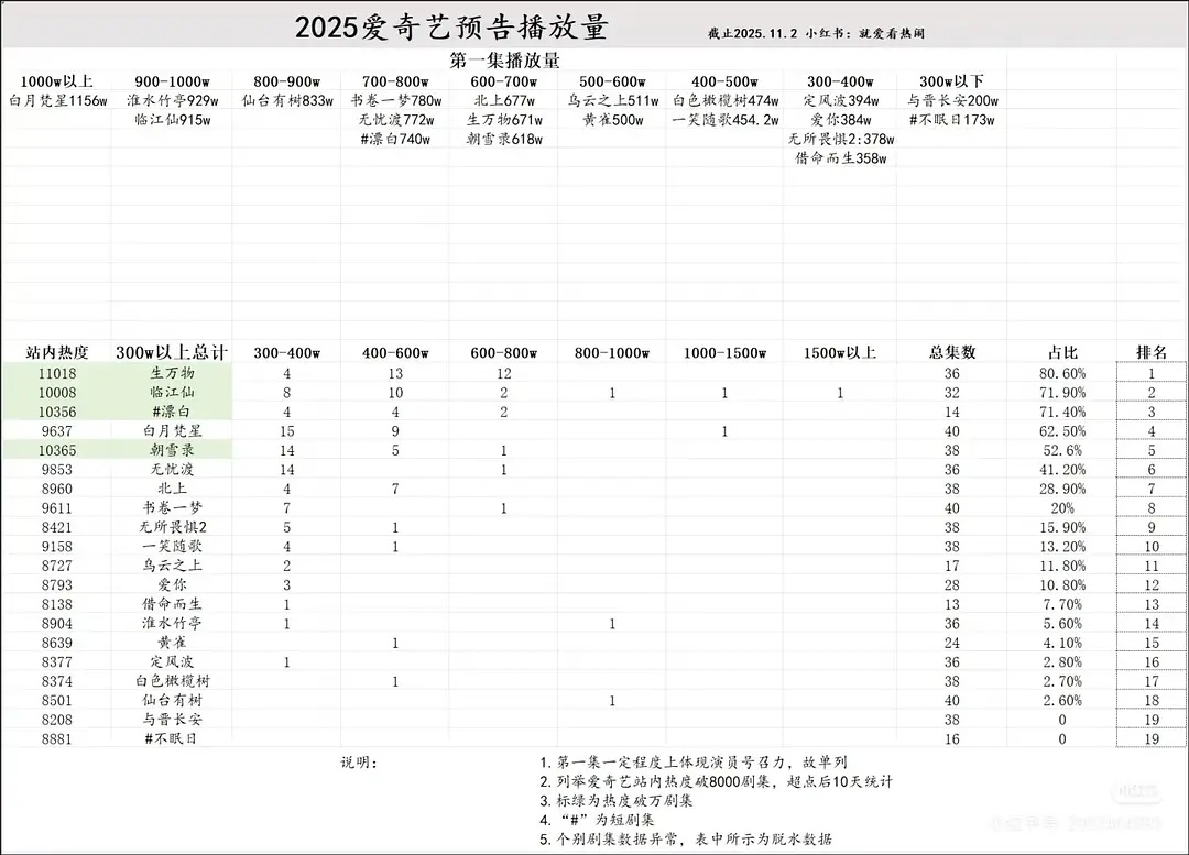 爱奇艺没被污染过的数据,一直在证明白鹿剧粉盘有多大,临江仙和白月梵星播的有多好。
