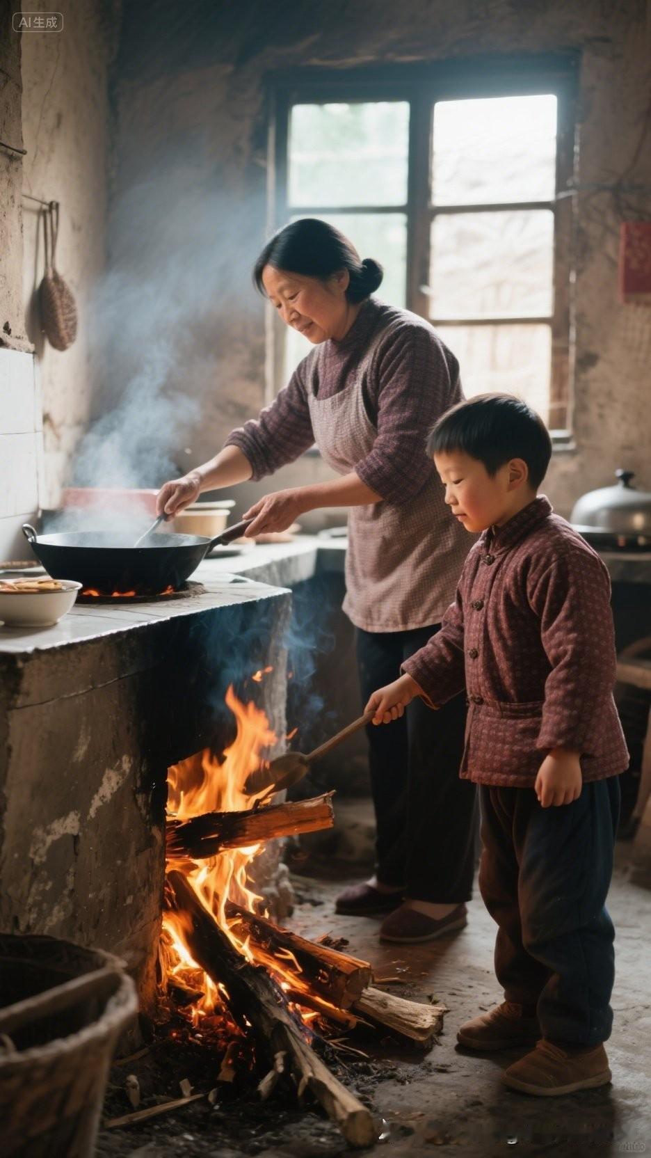 老家的厨房,是座时光的城堡,那口黑黝黝的灶台,藏着我的童年。 记得第一次被爷爷拉去烧火,心里满是新奇。我蹲在灶前,抓起一把干柴,胡乱塞进灶膛,火苗却像害羞的孩子,忽闪几下就灭了。爷爷笑着过来,轻轻拨弄柴火,火苗便欢快地跳跃起来。 我学着爷爷的样子,小心翼翼地添柴,看着火舌舔着锅底,映得脸庞通红。锅里飘出饭菜的香气,混着柴火的烟味,那是家的味道。 后来,我离开农村,很少再进厨房烧火。但那灶膛里的火光,始终在我记忆中闪烁,温暖着我对老家的眷恋,成为我心中最珍贵的旧时光。