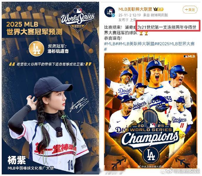 杨紫曾三次精准预测 MLB 冠军,每一次预测结果都与赛事最终走向吻合,这份对赛事的准确判断吸引不少关注。杨紫成功三次预测MLB冠军杨紫成功预测三次MLB冠军