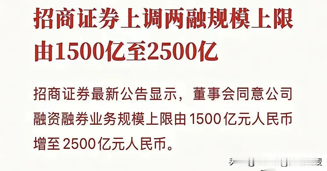 公务员炒股:从全面禁止到规范放开,藏着什么重要信号? 2001年以前,政府公务人员是严禁炒股的,之后政策松绑,允许公务员用合法财产合规炒股。现在中纪委明确,“公务员合法投资股市,是对国家建设的支持”。当然明确了炒股红线,内幕交易、上班炒股等仍严令禁止,“合规”是底线。 中纪委在这个时候发文重申公务员炒股是对国家的支持,这个信号很明白了,旨在打破“公务员炒股即违规”的误解,以“带头合规投资”的示范效应,带动社会对股权经济的认可,为国家建设注入民间资本活力。 再看图二,招商证券上调了两融规模,由1500亿到2500亿,说明慢牛还在延续,从公务员合规炒股到券商两融扩容,这一系列组合拳,正是当前“低波动率”慢牛行情最清晰的政策与市场信号。