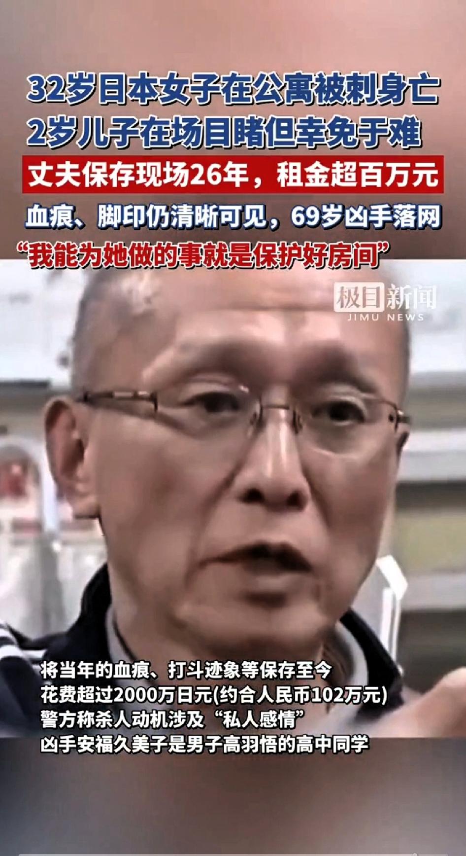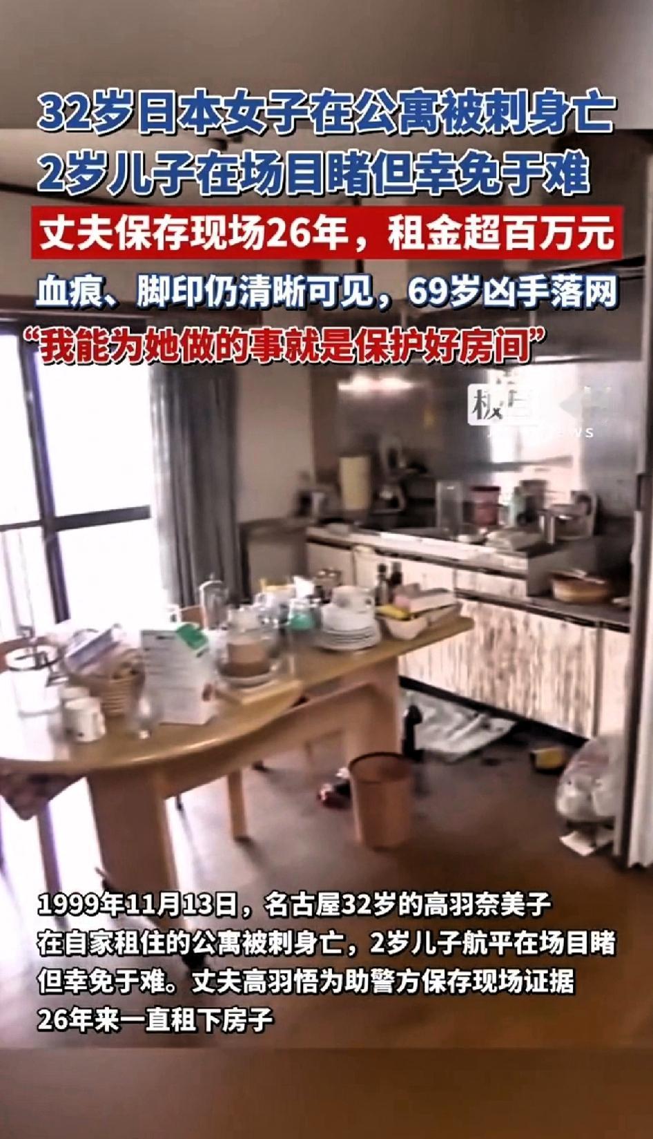 32岁日本女子在公寓被刺身亡,2岁儿子在场目睹但幸免于难!想想都觉得揪心。 丈夫保存现场26年,租金超百万元! 血迹、脚印仍清晰可见,69岁凶手落网。 丈夫:我能为她做的就是保留好现场。 1991年11月13日,住在古茗屋32岁的高羽奈美子在家玄关被害,案子多年悬而未决,丈夫为协助警方保留证据26年来一直租下妻子遇害的房子,花费超(102万)人民币! 直到26年后69岁的高中同学女嫌犯自首。 警方称凶手的杀人动力,“私人情感” 丈夫当年最后一次见她是1998年同学聚会,说自己结婚了对方也没大反应。 这些案件太让人唏嘘,也让人感叹生命的脆弱和世事无常。