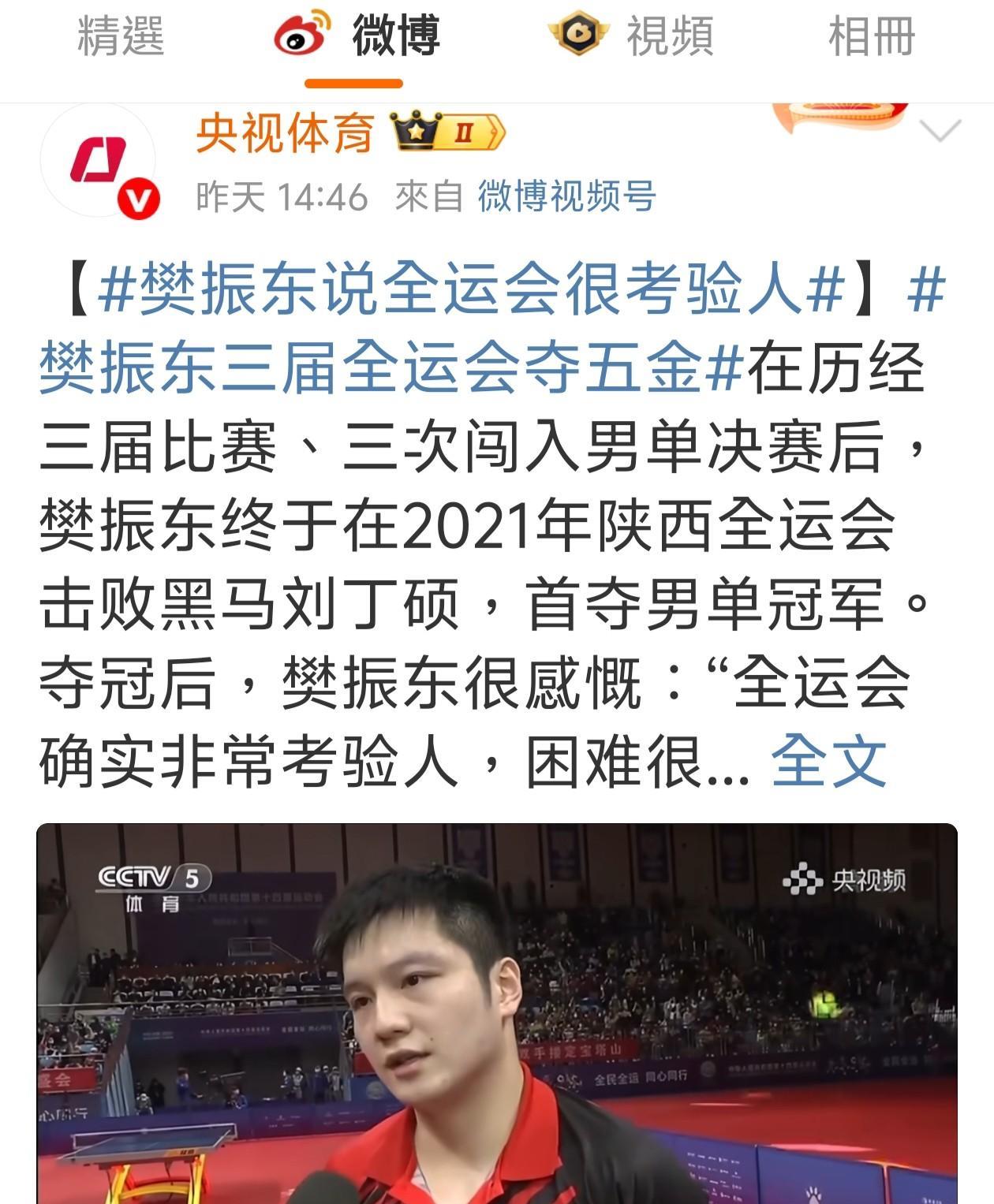 近段时间,在央视体育网总会看到樊振东的名字,甚至有时候还会看到一天报到两次,央妈是担心球迷忘记他吗? 全运会将近,樊振东的名字频繁出现在央网中。作为上一届金牌得主,集人品颜值实力于一身的樊振东,央妈选择用他的事迹作为宣传,是再合适不过了。 樊振东已经一年多没有在国家队训练了,他竞技状态肯定不如从前。但強者不一定是一直在贏,而是要坚持拼搏。小胖不是不会输,而他是不服输!从来沒有不败的神话,只有不屈的灵魂。低谷从来不是跌落神壇的最終結局,而是涅槃重生的最佳時机。希望樊振东快乐乒乓,全运会继续加油!