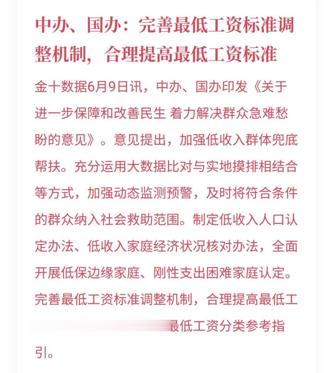 日前,中办、国办联合发文强调,“完善最低工资标准调整机制,合理提高最低工资标准”。