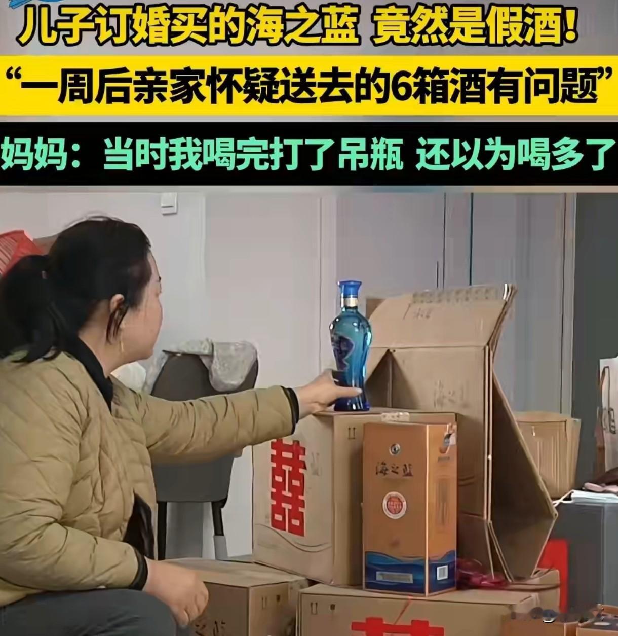 订婚买酒竟遇假货!7千块海之蓝让亲家当场打脸 河南赵女士为儿子订亲,在葛天商贸港徐华百货花7150元买了11箱海之蓝。订婚宴用了6箱,结果不少人喝完不舒服,她自己第二天还去打了吊瓶。 起初大家以为是喝多了,直到亲家怀疑酒有问题,赵女士这才慌了神。她找商家理论,可商家一口咬定自己没卖假酒,死活不承认。 没办法,赵女士只好拿了7瓶酒送到市场监督管理局鉴定。经厂家确认,这些酒外包装、防伪标全是假的,只有瓶子是真的,属于假冒注册商标产品。 市场监管所工作人员说,厂家没认定质量有问题,而是定性为“商标侵权”,已经对商家罚款了。赵女士要求“退一赔三”,可商家却拒绝了。 商家还狡辩:“市场监管局已经罚过款了,酒是别人放我这卖的,钱也给了对方,我也是受害者,啥都不知道。”这话听着就来气,合着卖假货还有理了? 其实这种事也不是第一次发生。前两年有个大哥结婚,在批发市场买了几箱茅台,结果全是假的,婚礼上被亲戚发现,当场就下不来台,好好的喜事闹得挺尴尬。 这些商家真是太黑心了,专挑结婚、订婚这种重要场合坑人,就瞅着人家着急用,没时间仔细验货。咱买东西尤其是这种贵重礼品,可不能图省事,得睁大眼睛。 咱再说说咋避免买到假酒。首先得去正规渠道买,比如大型超市、专卖店,别去那些没资质的小百货店。其次,买的时候要仔细看包装、防伪标,必要时可以扫码验证。 还有,一定要保留好发票和购物凭证,万一出了问题,这就是维权的证据。像赵女士这样,虽然过程曲折,但好在最后维权成功了,也算没吃大亏。 最终经协商,商家同意下周一退还7150元酒钱,并赔偿8000元。赵女士这才松了口气,可这事留下的阴影,估计一时半会儿散不了。 这事也提醒咱,做生意得讲良心,不能为了钱就坑蒙拐骗。消费者遇到这种事也别忍气吞声,该维权就维权,让这些黑心商家付出代价。 你要是遇到这种事,会咋处理?评论区说说你的招,咱一起琢磨琢磨怎么避免被坑!