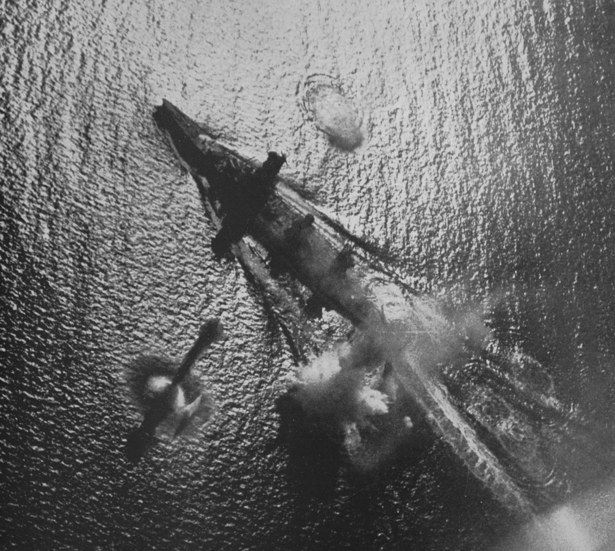 苏里高海战中(待考证,遭到美军舰载机猛攻的山城号战列舰