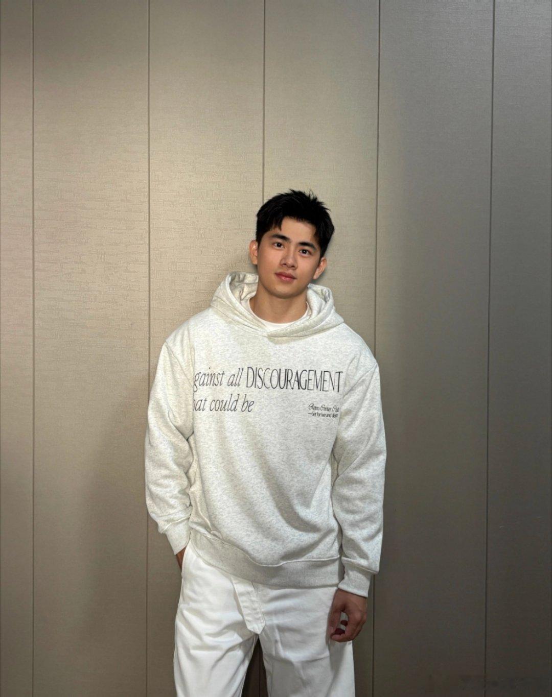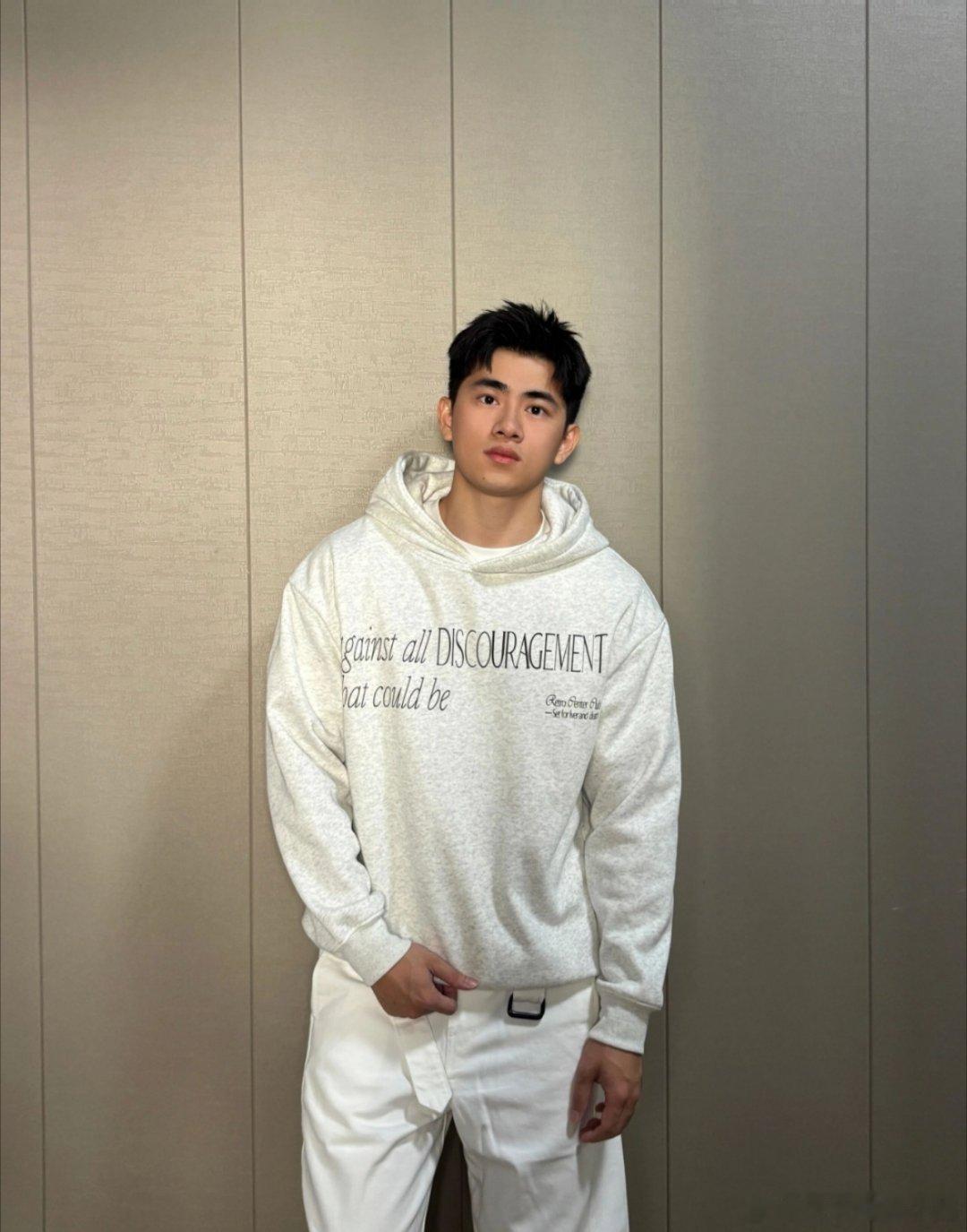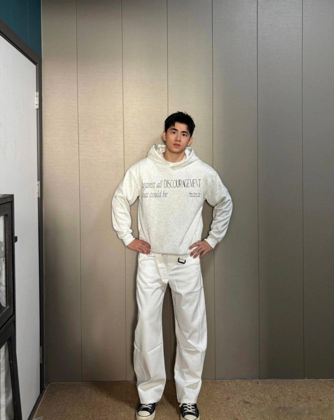 男模[超话]健身打卡 浅灰卫衣搭白裤,松弛感拉满