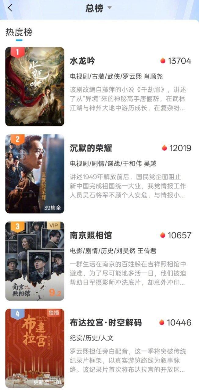 罗云熙水龙吟布达拉宫热度双破万 数据说话!两部作品承包咪咕热度榜,双破万的成绩太能打~ 从武侠江湖到历史秘境,每一部都值得N刷!