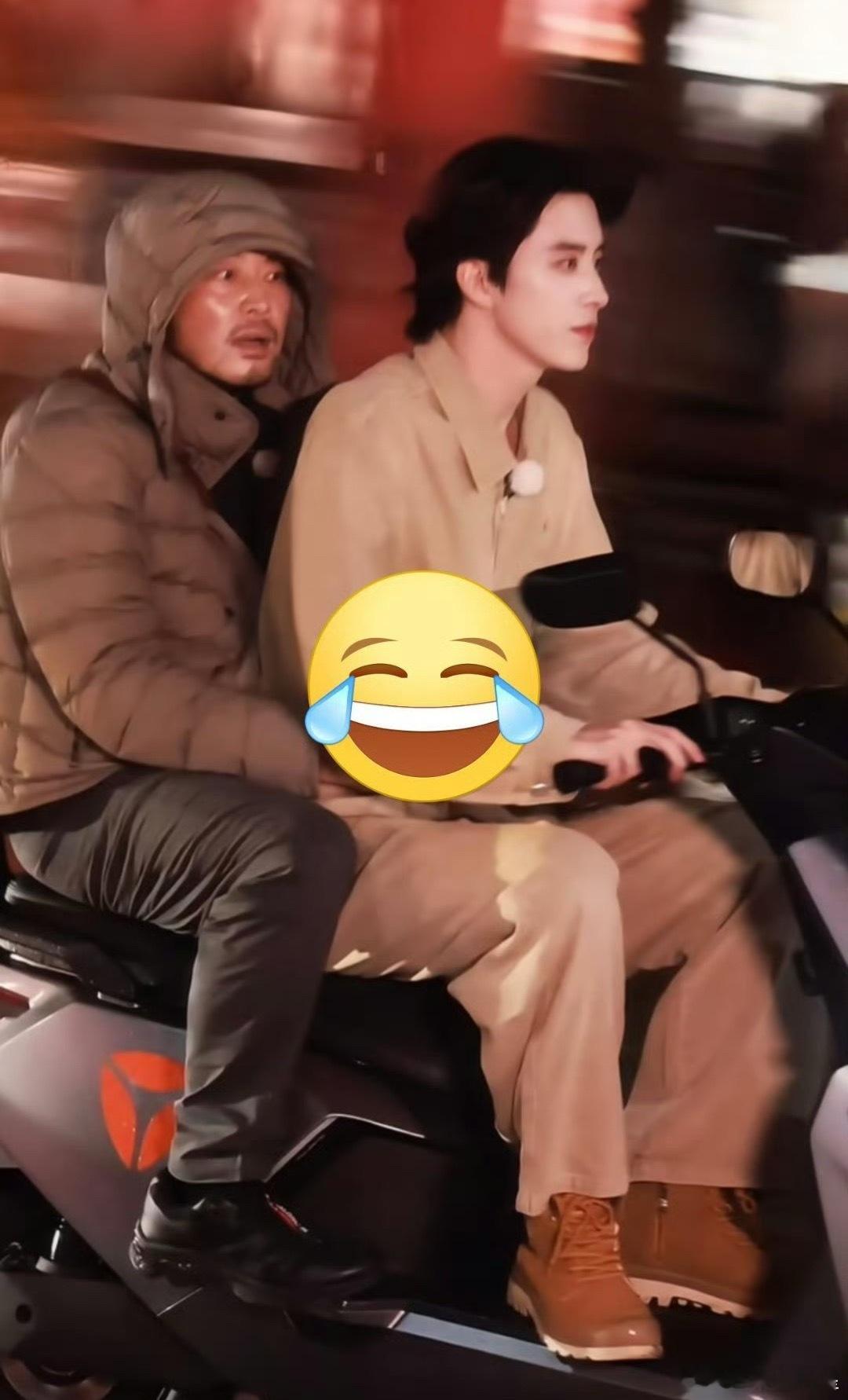 敖瑞鹏骑车带沙溢 像送流浪老人