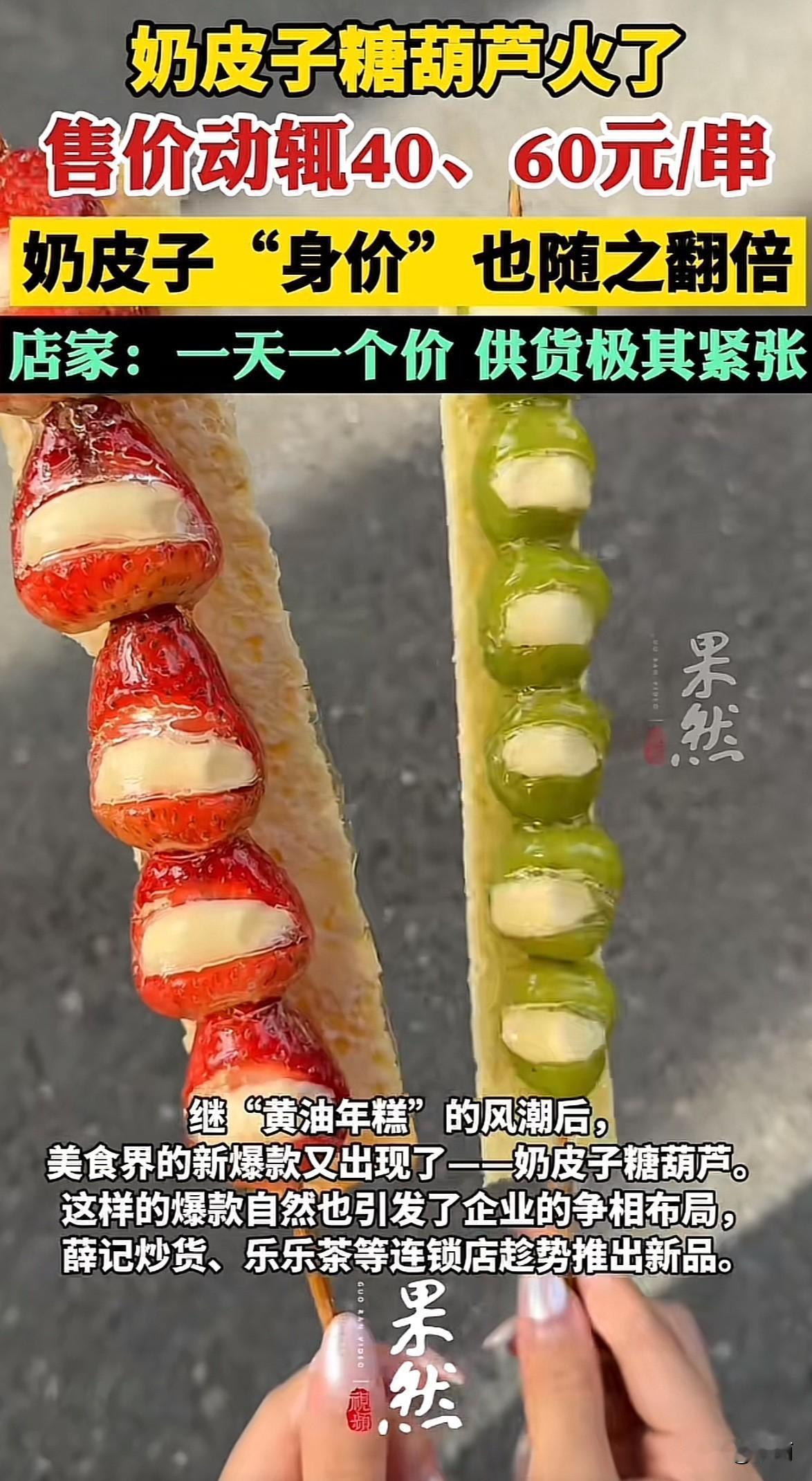 奶皮子糖葫芦最近火遍全国,上海有店卖98元一串,杭州、南京等地排队能达几百米,薛记炒货、乐乐茶都跟风推出新品。原料奶皮子价格一周涨近三倍,还催生了代排产业链。 有人觉得风味新奇值得尝鲜,也有人吐槽价格虚高像“智商税”。部分商家用植脂末顶替奶皮子,还有的口感偏腻、山楂发柴。它热量不低,胃肠不好、血糖异常的人得少吃。 网红小吃靠新鲜感吸睛没问题,但溢价太高、偷换原料只会砸招牌。想长久火,得把口味和性价比做实在,毕竟消费者尝鲜过后,留下的还是真材实料的好味道。