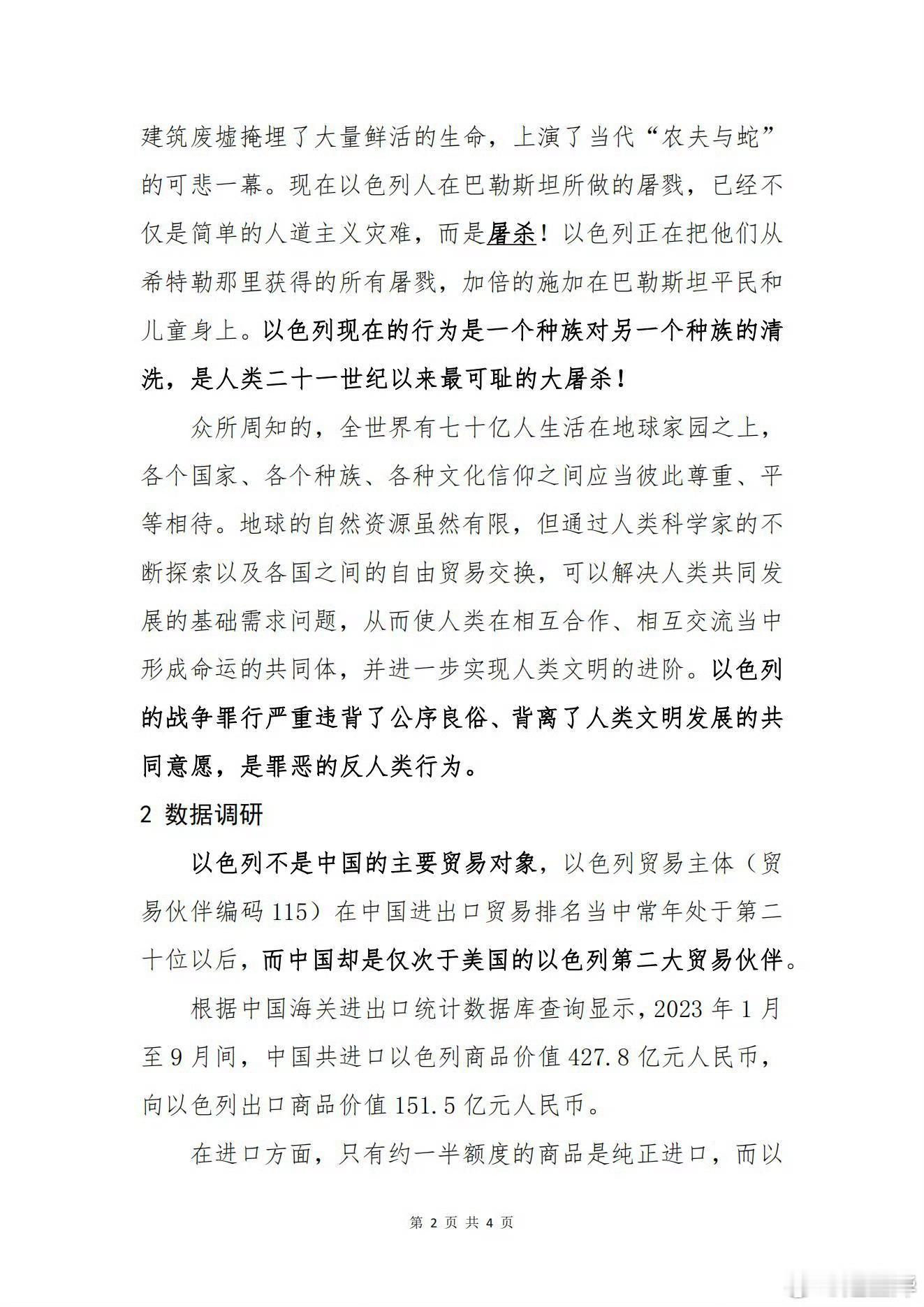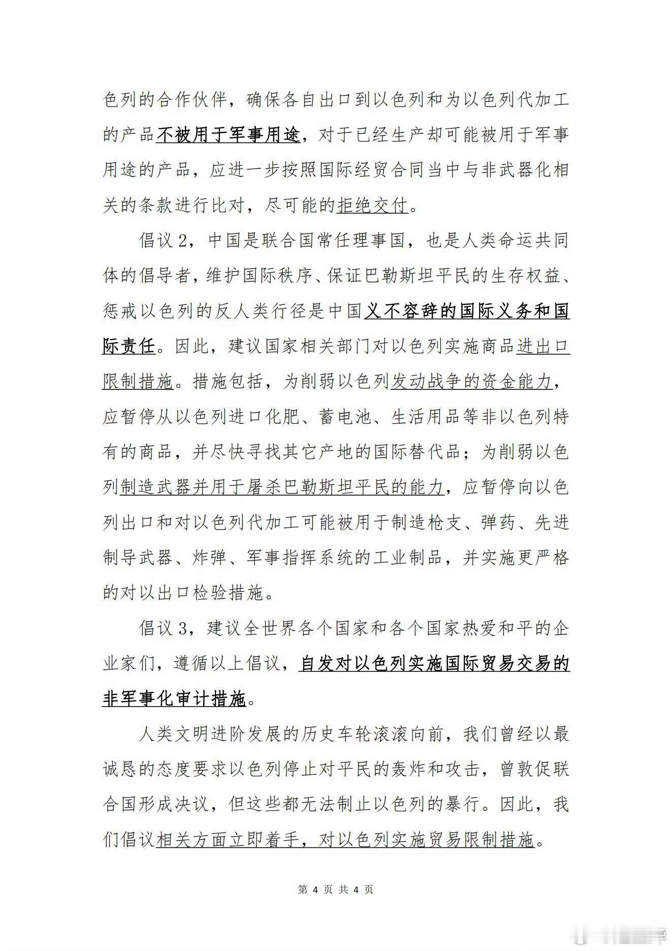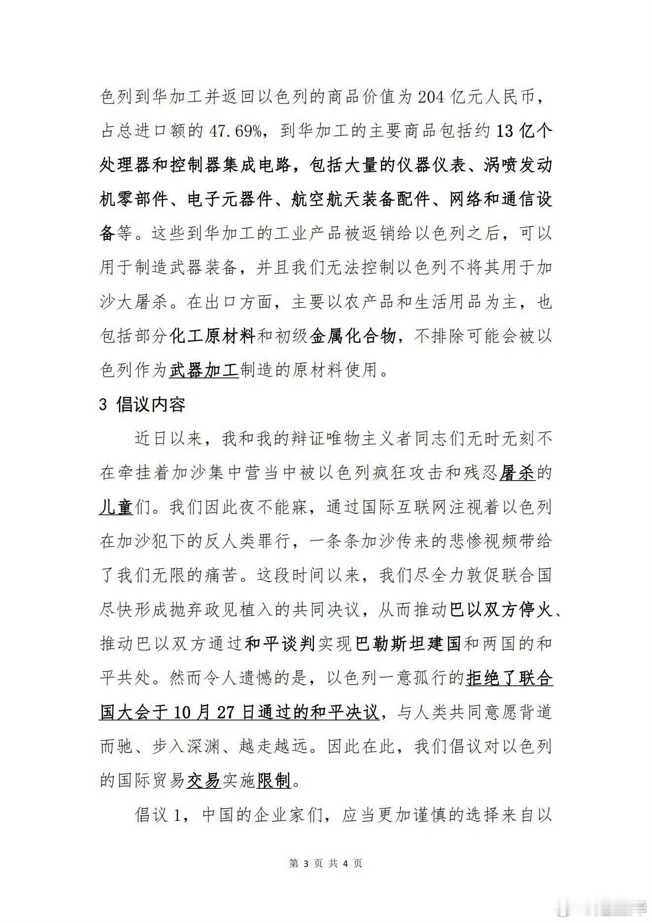 对,这就是我的观点:倡议对以色列实施进出口商品审查和限制---- 一个内心深处当中根植着善良的辩证唯物主义者的观点,也是一个中国爱国者的观点,我们爱中国,我们也爱世界,我们不能抛弃那些可怜的孩子们。