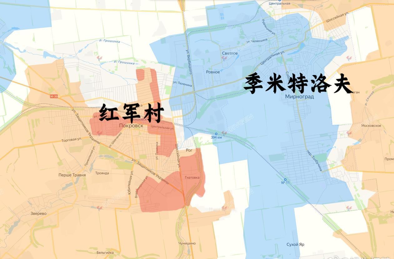 红军城局势11.1 俄军在城北的战斗已经将城东和城西的乌军分开,现在缺口只剩3.