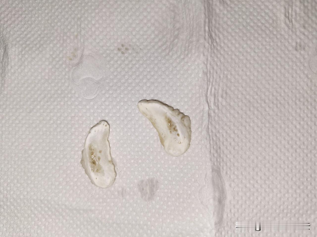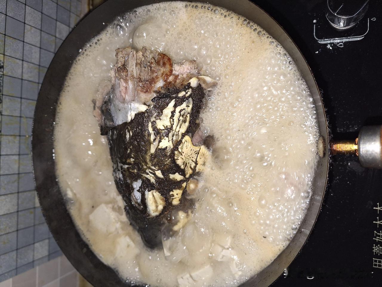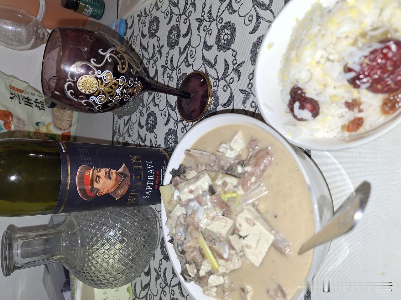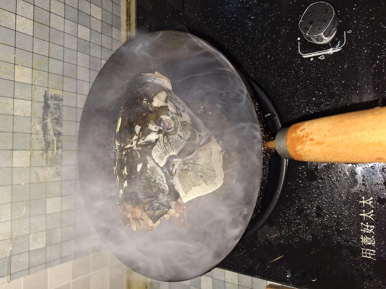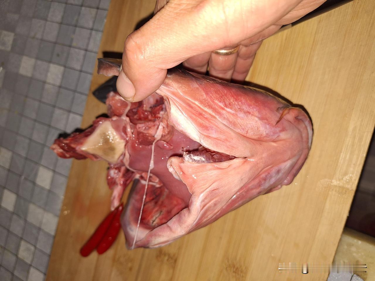 今天晚上炖骷髅,用来自焉耆县博斯腾湖的一种我叫不上名字来的鱼的头,这么大,估计有半公斤,头骨太硬了,菜刀剁不开,要用利斧才行。但我没有,出去买,容易被拘。只好整个下锅,正反面过一下滚油,先放料酒和姜片后再倒入开水,大火炖半小时,再加豆腐和葱段,小火焖半小时,起锅。满满的胶原蛋白,还有脑黄金脑白金,味道好极了。看,这鱼的牙都这么大,结合肉质,我初步判断是肉食性的冷水鱼。