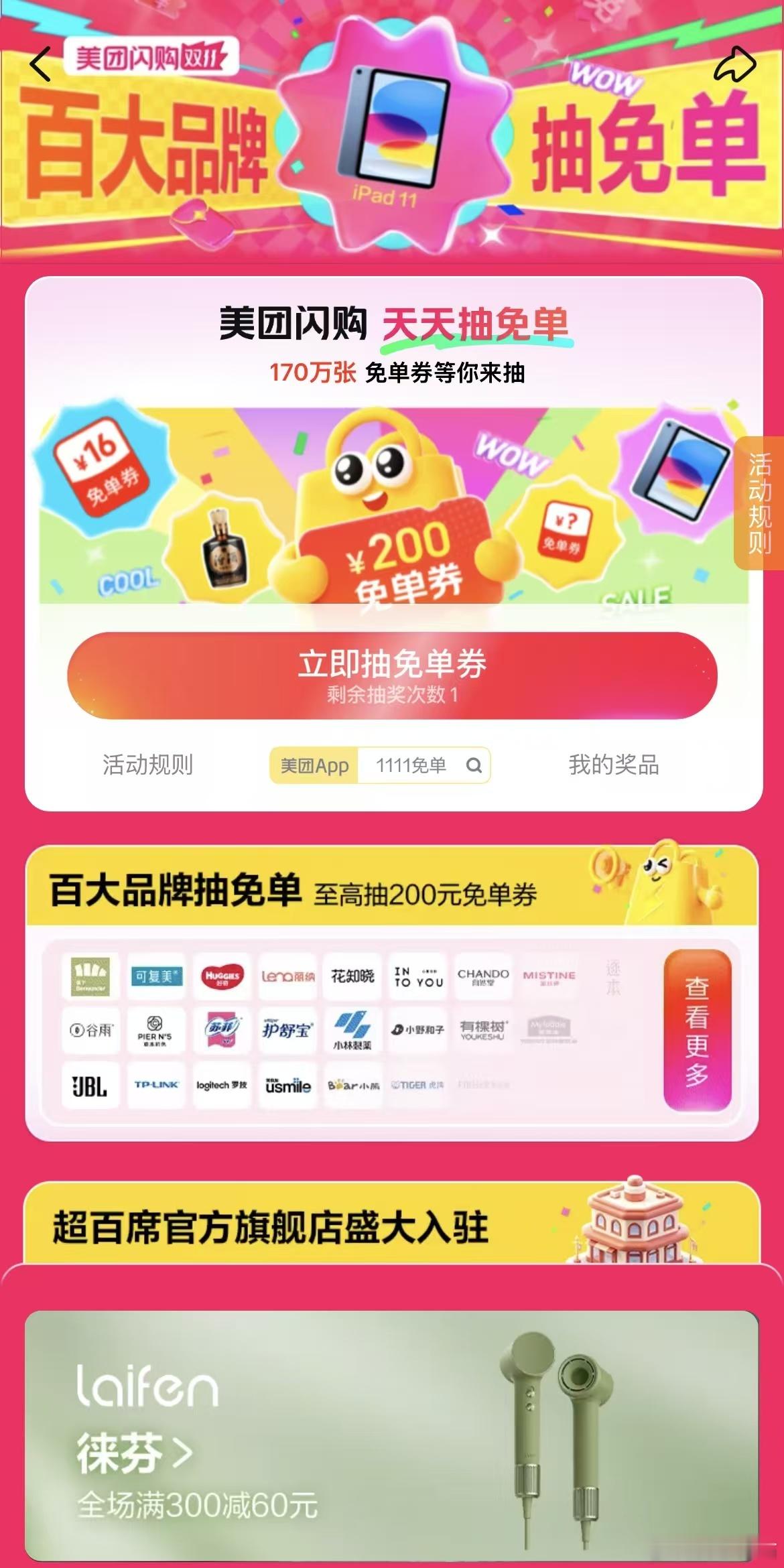 不是我定力不够,是美团闪购这波太诱惑!欧莱雅、毛戈平、施华蔻…百大品牌抽免单,这哪是购物,这是抽奖啊!而且奖品丰厚到离谱!手快有,手慢拍大腿!宠妻者果然风生水起美团闪购百大品牌免单双十一