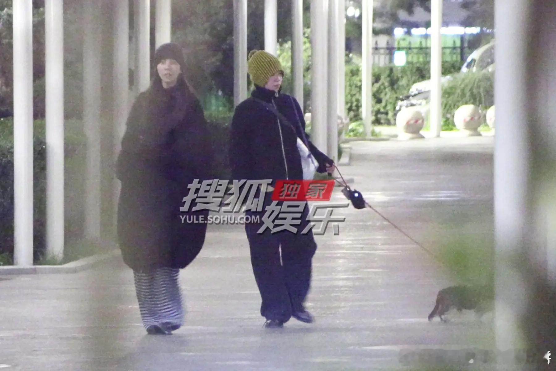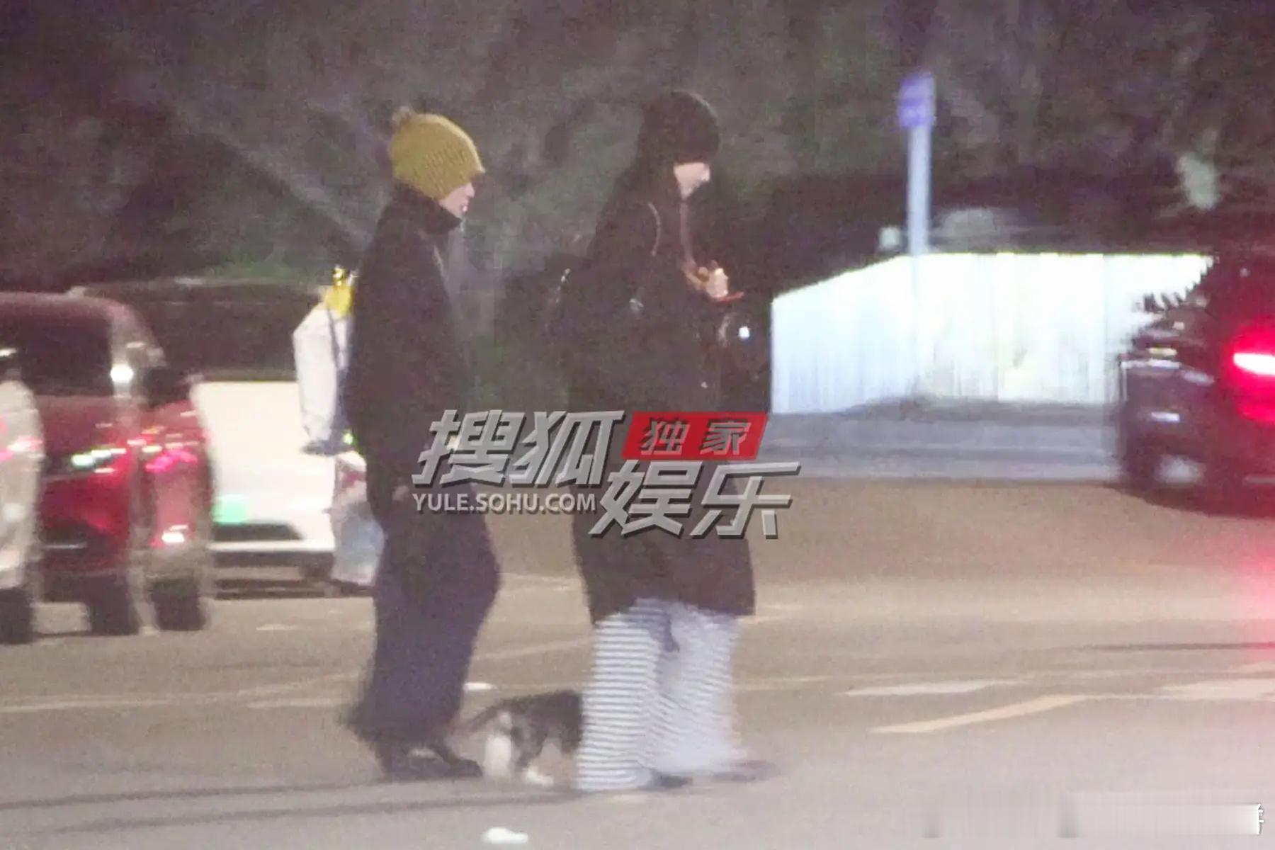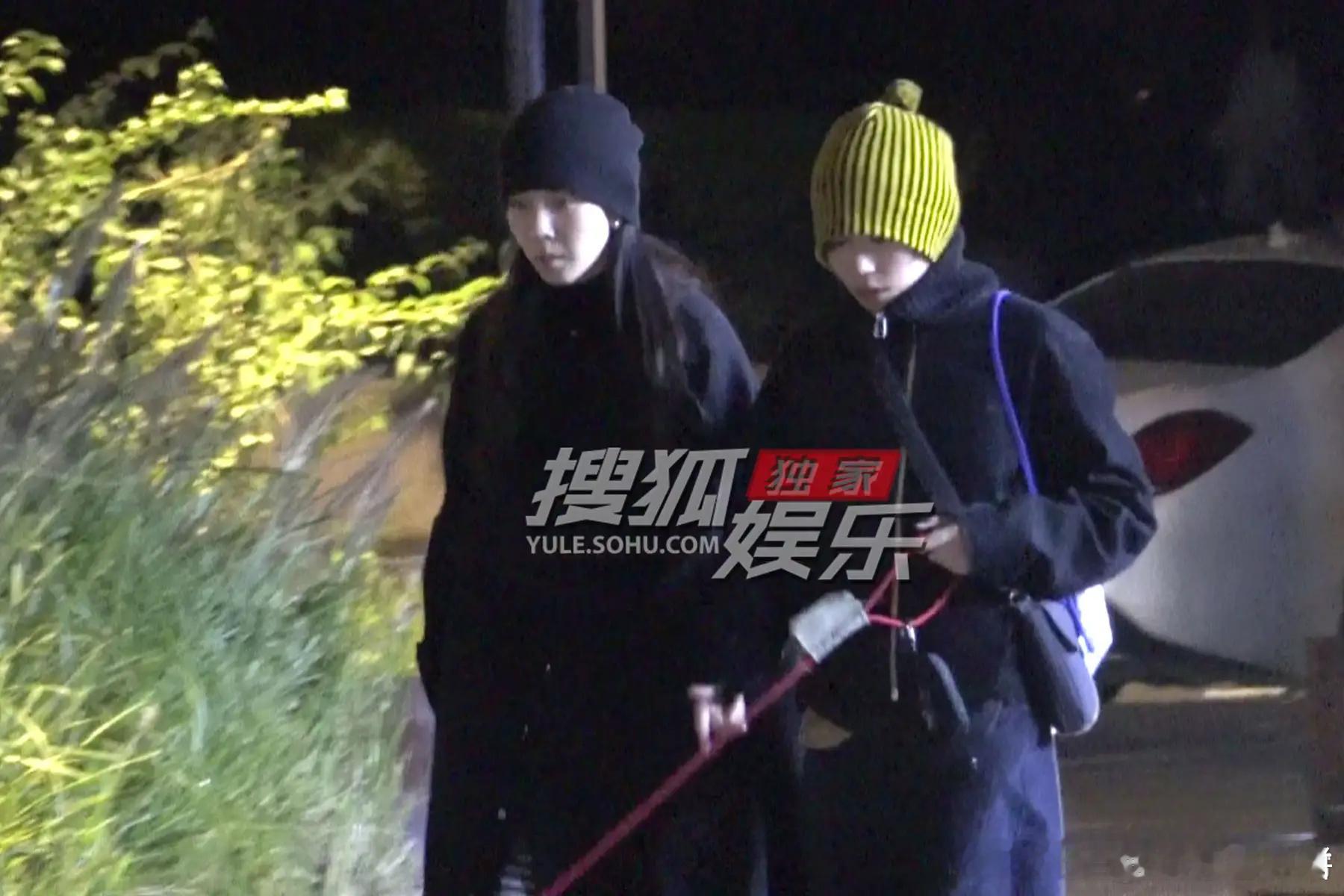 窦靖童和宋妍霏一起牵狗在路上散步,最后两人一起回到宋的家