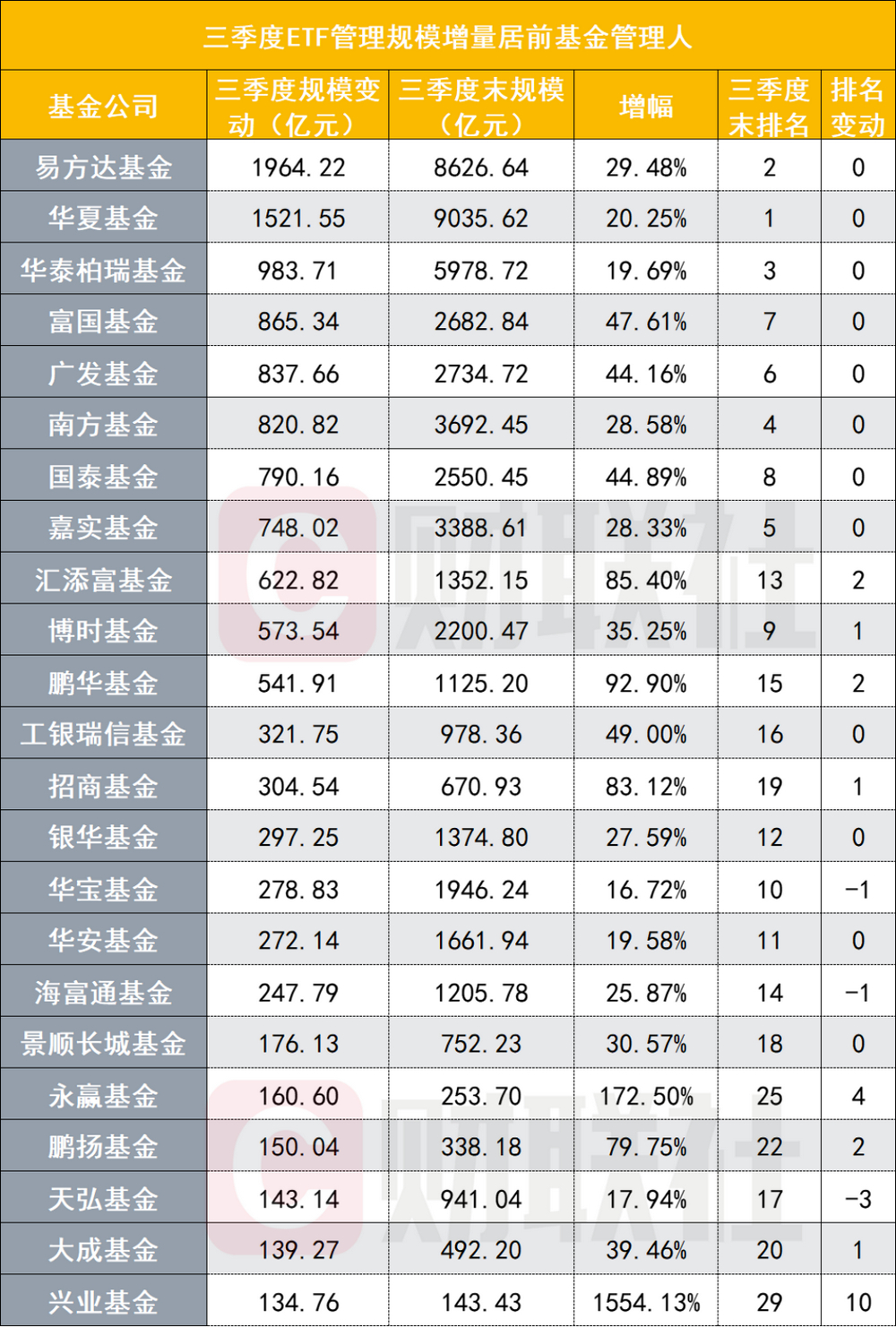 ETF里面就是连个最大的玩家易方达和华夏在互相竞争,其他人落后太多了。