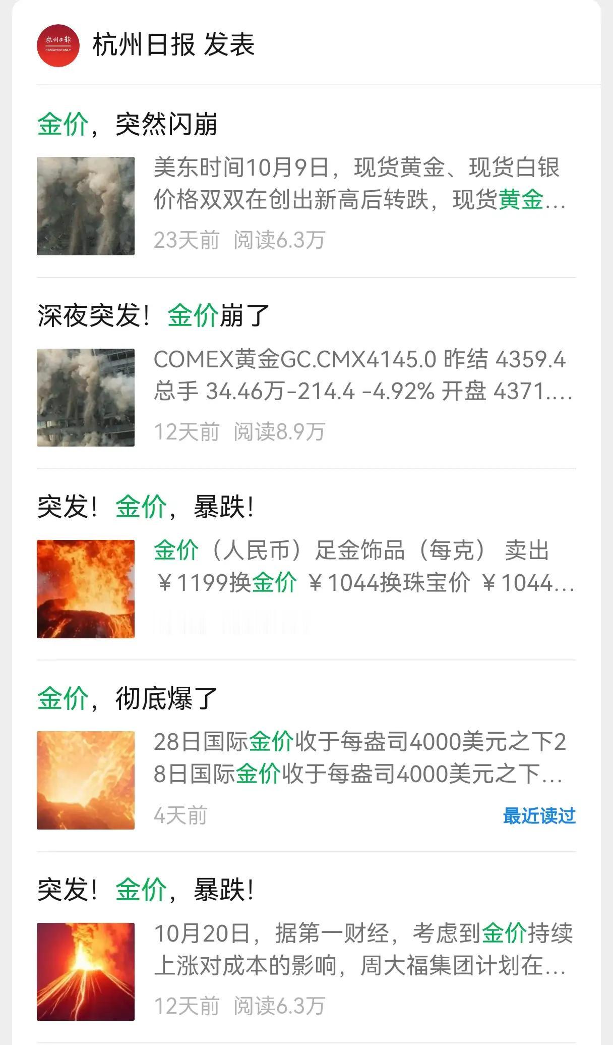 现在“杭州日报”公众号,标题党味太浓了。 还有些官媒公众号为博流量,起些博人眼球的标题,像“刚刚,定了!”“明确了!可退款!”,内容却和标题严重不符。最近又和黄金杠上了。“杭州日报”也加入这行列,实在让人失望,希望能多些真诚,少些套路。